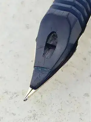 El tema es que quería hace ya tiempo hacerme con una de estas japonesas flexibles y vi la oportunidad en el foro citado, bien pues hoy me ha llegado y rasca muchísimo al escribir y al girarla descubro que tiene el alimentador roto y pegado con superglue