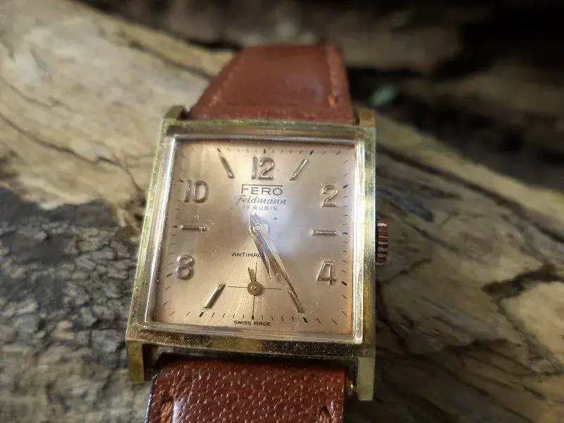 De izquierda a derecha: Fero Feldmann; White Star; Seiko Crono encaramado en mi increíble cocina a leña; Lanco Rocketeer y Seiko Televisor mini ( lo tengo desde los 10 años ).