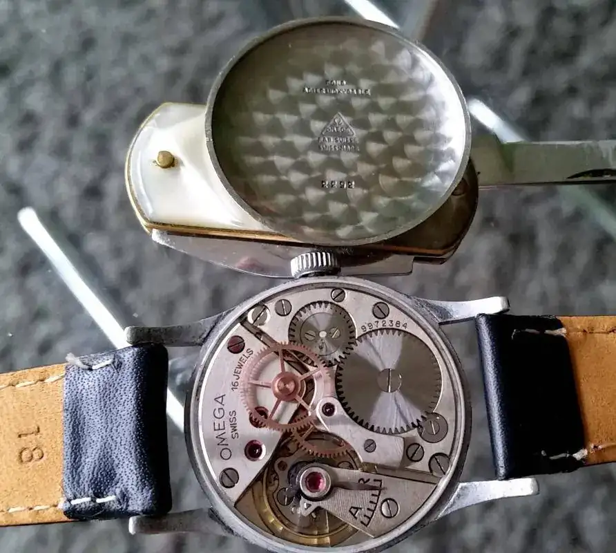 Aunque algunos decodificadores de números de serie en la red arrojan para el movimiento una fecha de 1943, al parecer este serial 95xxxx es temprano y correspondería a 1942. Por los ejemplares conservados, Omega suministró en 1942 una versión con caja toda de acero (marcada "acier staybrite"), versión más rara de encontrar, y en 1943 la más común de duraluminio. Por lo general, las cajas de duraluminio corresponden con calibres del 43, aunque hay bailes de calibres, como cajas de acero (las del 42) con calibres con seriales del 44. En este caso, el calibre es del 42 y el modelo duraluminio principalmente del 43. O bien se montó un calibre en stock unos meses anterior en la nueva versión de aleación o bien sencillamente se hizo un cambio durante los frecuentes servicios que estas piezas de precisión recibían durante la guerra (lo que explicaría que haya cajas de acero cosecha del 42 con calibres del 44).