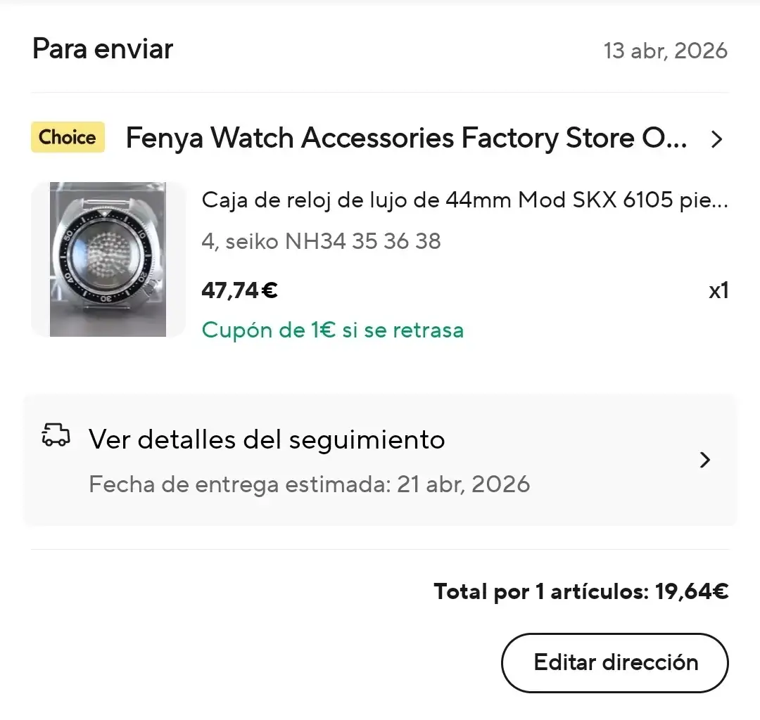 Ha caido una caja para mod de Willard, la de correas de 19 mm por 19 euros :