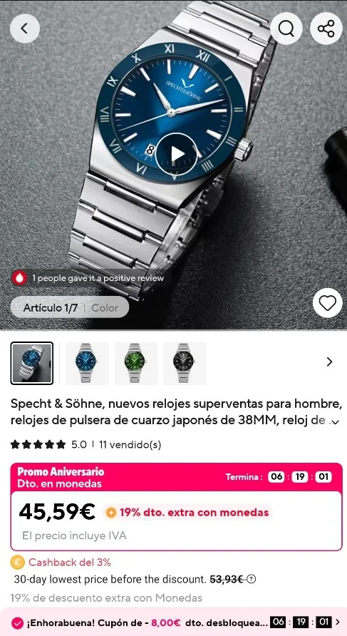 ¿Qué movimiento de cuarzo lleva? ¿VH31?Bueno pues al final en el descuento de los descuentos, que la promo termina esta noche, y como tenía muchas dudas con el Didum (estamos fatal) . Estaba mirando otras alternativas al nautilus y he llegado a una versión en cuarzo de Spechanson , muy finito y coqueto . Pero igual que rodando rodando caes en el bar y de pronto te encuentras con un cubata en la mano yo me he encontrado con este homenaje del omeiga constellation y no he tenido mas remedio que tirarle:
