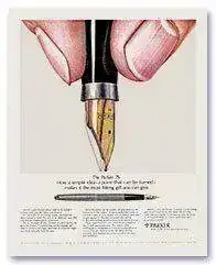 Respecto a lo que menciona sobre la posibilidad de orientar el plumín en el modelo parker 75, esta era una de sus cuallidades. Con la ayuda de la pequeña herramienta que pongo abajo (una de las versiones), se podía girar el plumín/alimentador dentro de la sección para colocarlo de la mejor manera respecto al ángulo de escritura del usuario. El anillo junto al plumín presenta en algunos modelos una graduación para indicar el ángulo girado. Algo que la mayoría de las veces para desapercibido. La boquilla también presenta unas huellas de apoyo para la mejor sujección de los tres dedos sobre ella. El plumín se giraba respecto a esa posición correcta de apoyo de los dedos. Ahora lo llaman ergonomía, aunque en la mayor parte de los casos, la realidad se reduce al uso de la palabra en la caja del chisme.