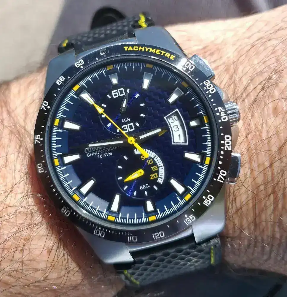 Bueno, pues después de mucho tiempo vuelvo a aparecer por aquí para abusar de vuestra sabiduría colectiva. Éste es uno de los relojes que más me gustan de los que tengo (lo que os dará una idea de la humildad de mi colección). Un Neckmarine que a mí me parece muy bonito, con una precisión pasable y sumergible. Me hice con él por cuatro perras en una relojería que cerraba, cuyos empleados estaban liquidando el género para pagarse el finiquito y le tengo bastante cariño.