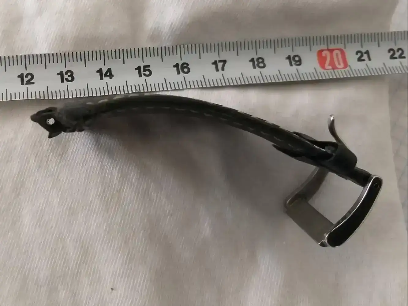 El problema, como habréis notado los más avispados (o sea, todos) es la distancia entre asas, que lo pone difícil a la hora de cambiar la correa. La original, que tampoco era para echar cohetes, es imposible de conseguir, ya que el modelo está descatalogado y la que le adapté... bueno. Deja un hueco bastante feo.