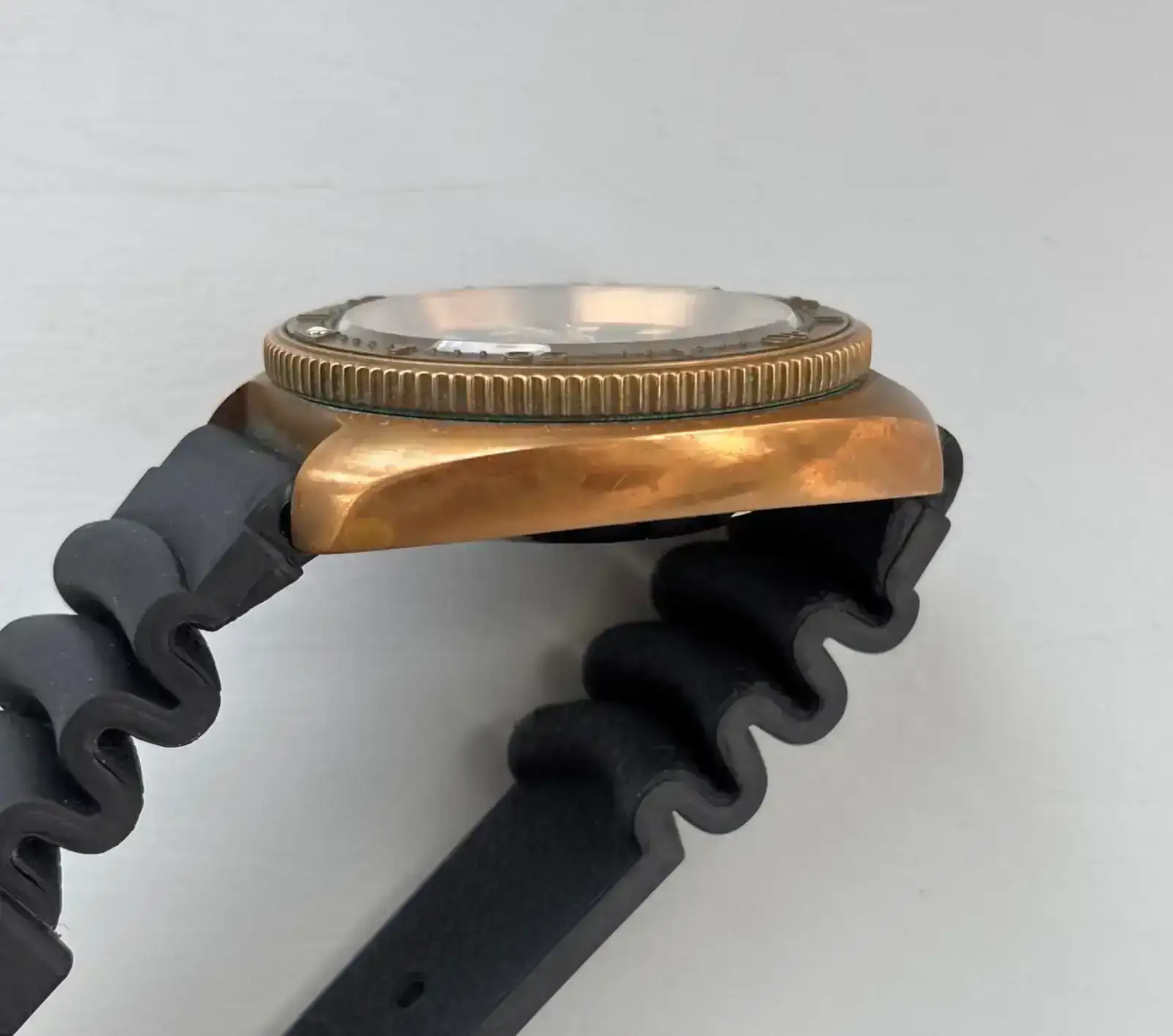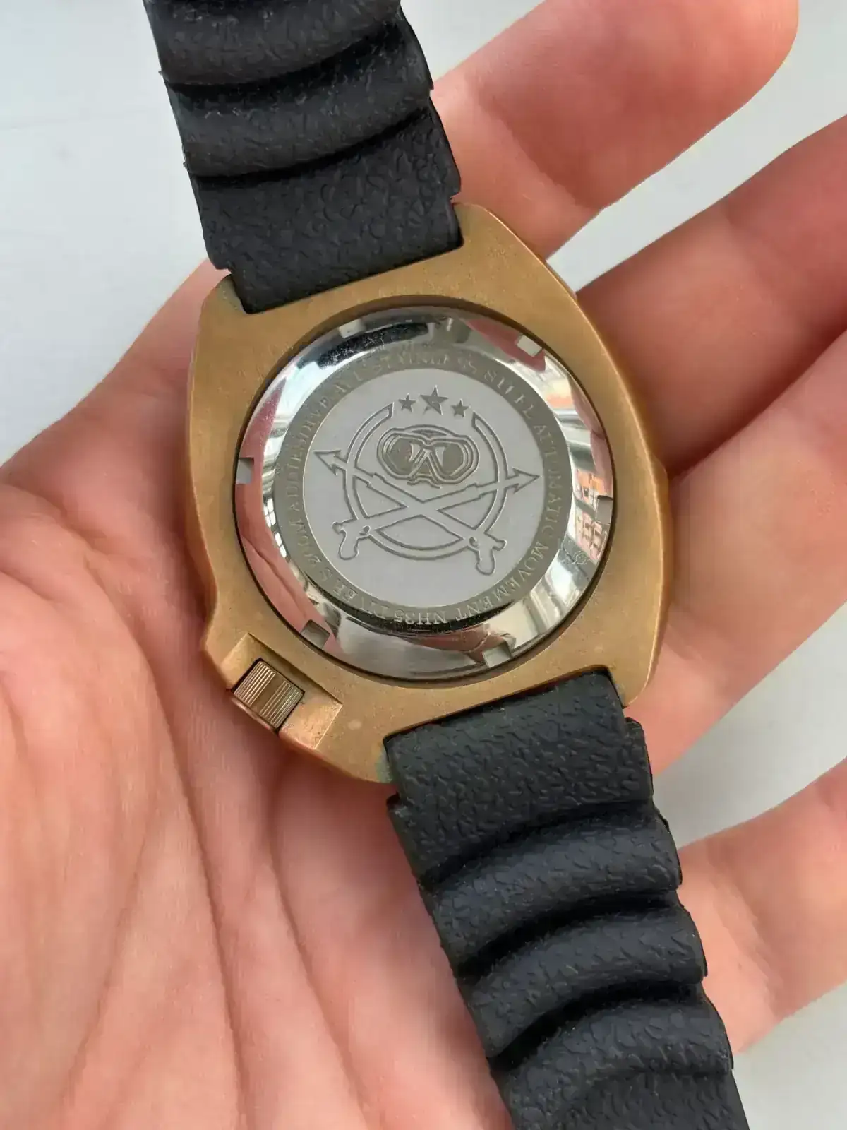 Decir que cuando vuelvo del agua lo sumerjo bajo el grifo un rato y lo dejo secando. Esta es por tanto la pátina que de manera natural ha adquirido este reloj. He visto que algunas personas los sumergen en mezclas con vinagre, sal...para acelerarlo.