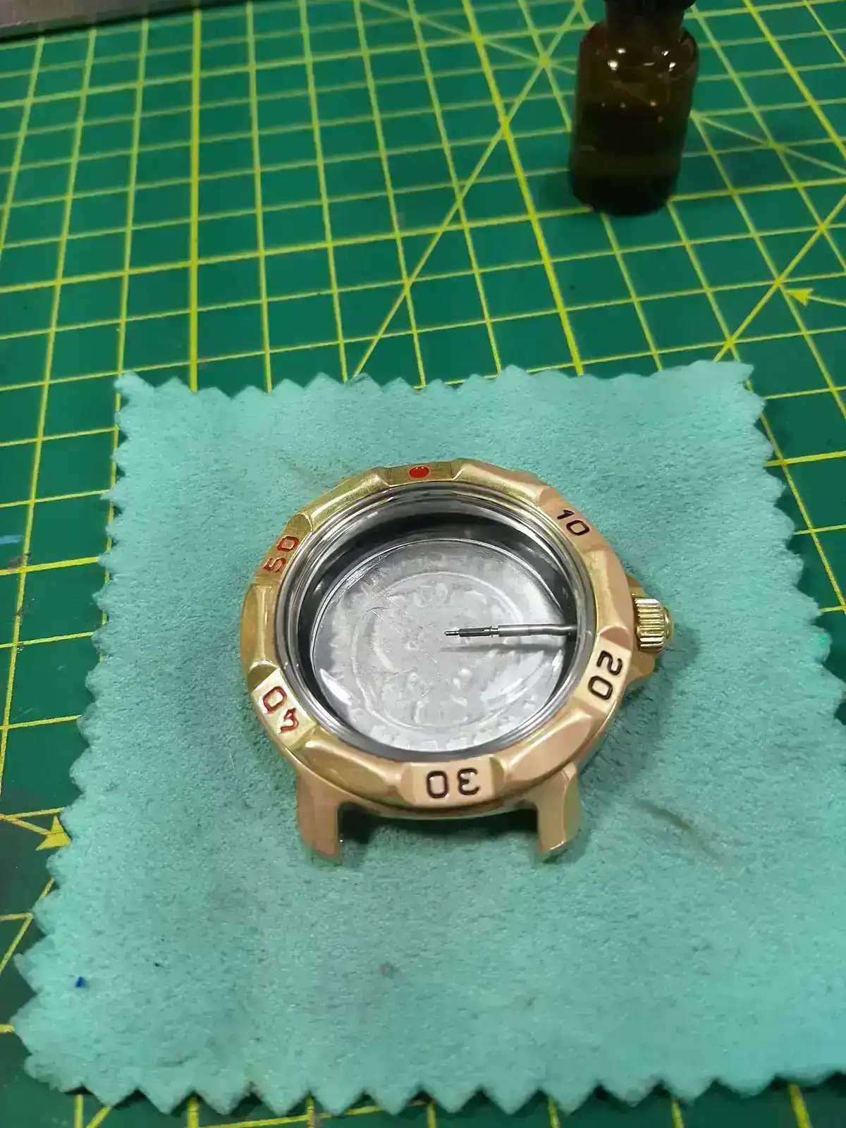 Añadido al proceso que hago con todos, con los vostok, debido a esas características, un vez seco el reloj, abro la corona y con un cepillo de dientes suave y húmedo, le doy pasadas a la rosca del cañon, y luego una pasada con la punta de un paño para secar y terminar de sacar la mugre. Enrosco a tope y desenrosco un par de veces y repito proceso una vez mas.