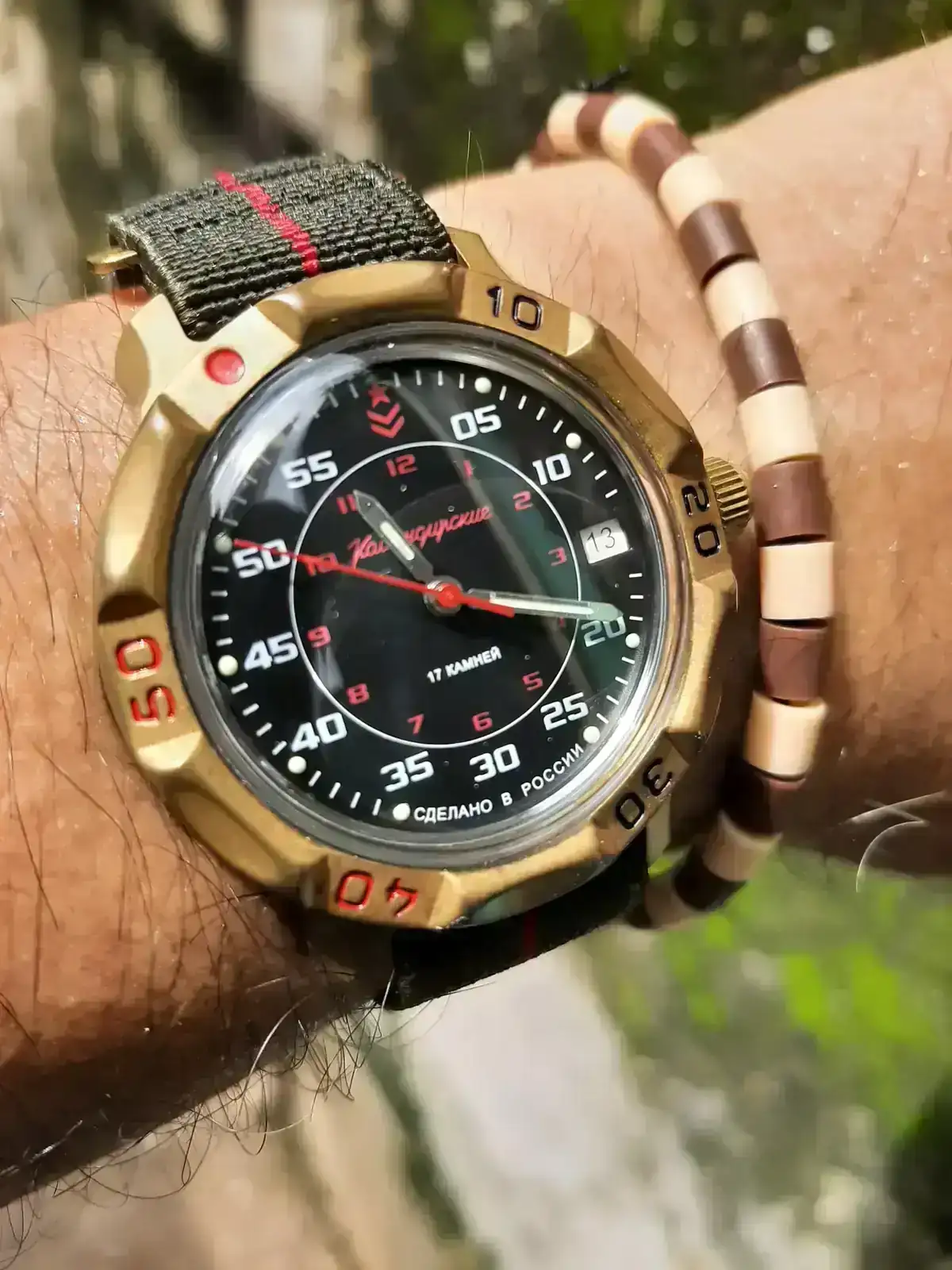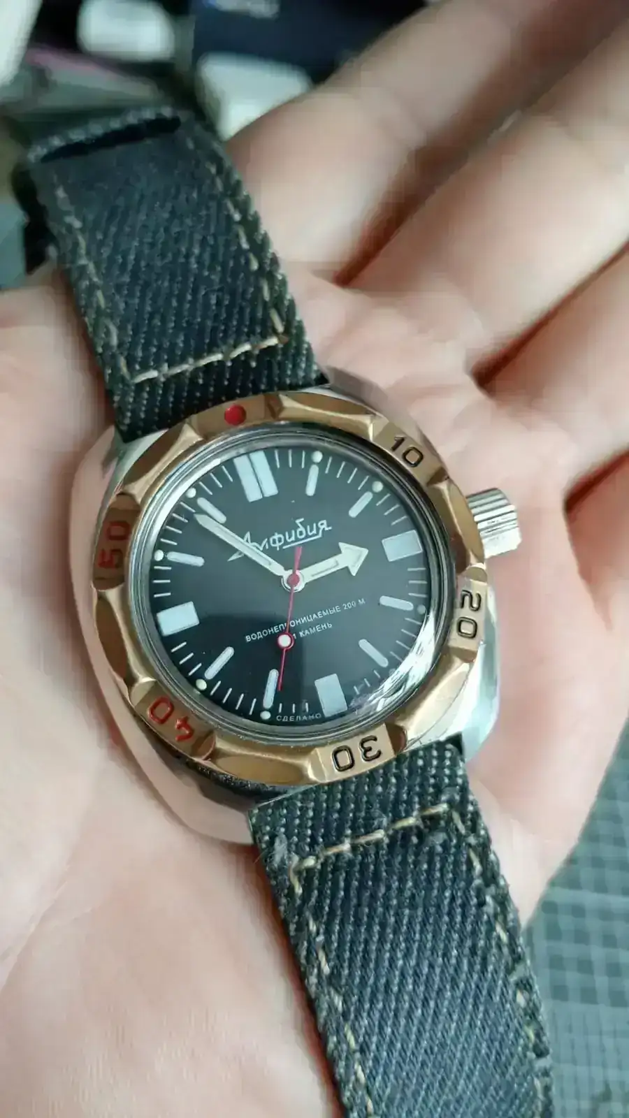 Es parte del encanto de los relojes rusos, los biseles de los Komandirskie le sirven a los Amphibia, dan para "jugar" un buen rato con ellos.Creo que le queda muy bien. Ese latón está precioso.