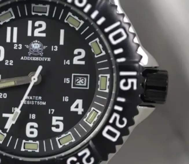 Esto es curioso porque aquí addiesdive ha querido replicar el sistema de lumen con tubos de tritio del reloj original, pero claro sin tubos de Tritio. La cualidad de este isotopo radioactivo es que es luminiscente por si mismo, no necesita ser excitado ni cargado previamente. Y este sistema de addiesdive parece reunir lo peor de ambos, durará poco en el tiempo y por supuesto que no brilla por si mismo.
