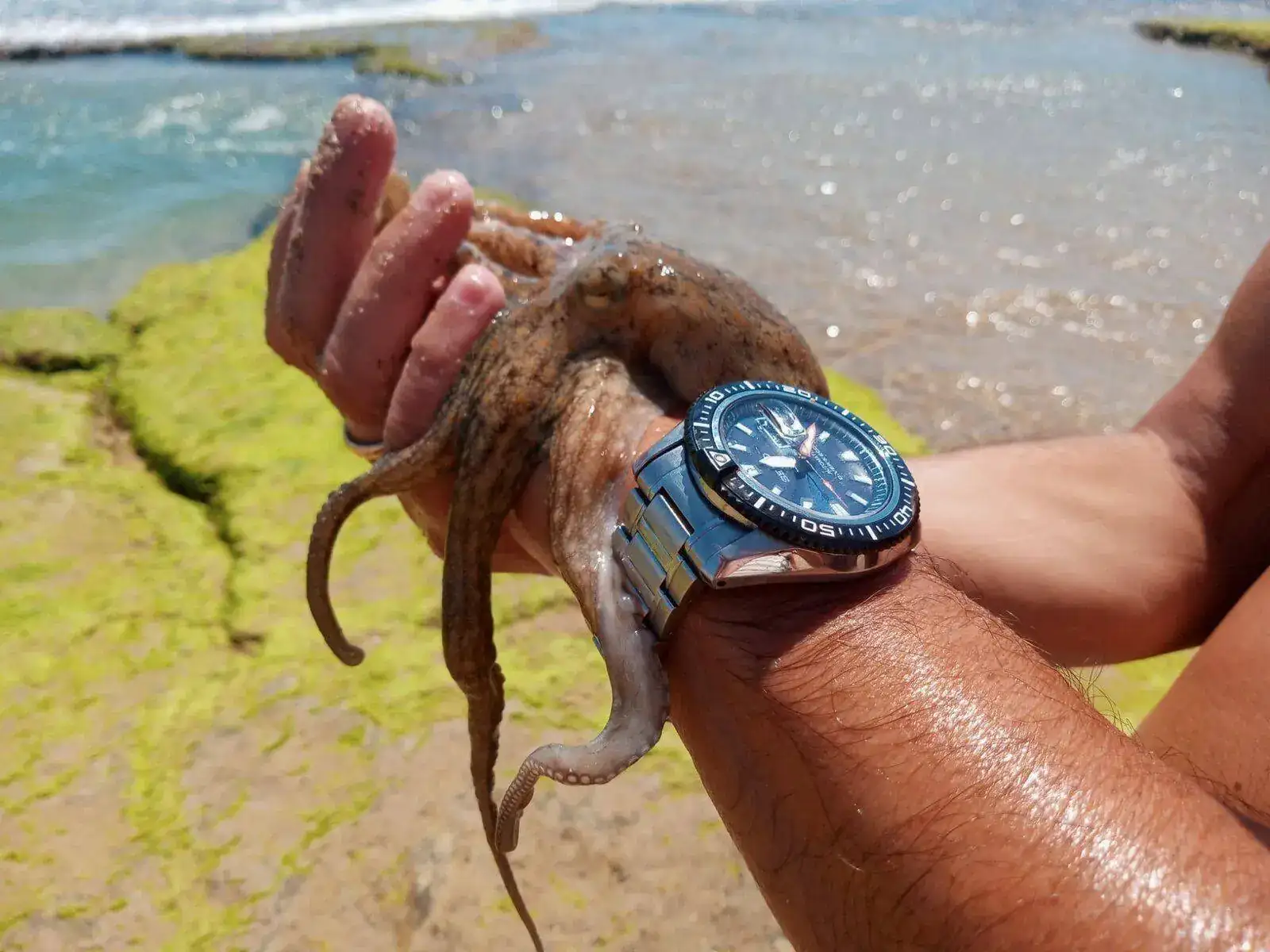 Bonito ese pulpo, con dos más, ya te haces una buena ración de pulpo a la gallega.Ha sido en Torrevieja, fotos y al agua otra vez.