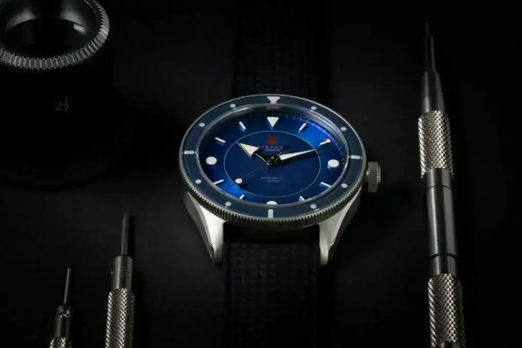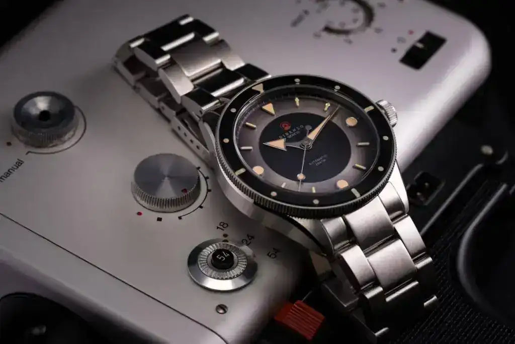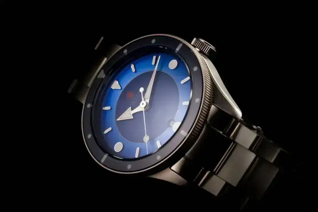 Será su primer reloj de buceo. Aunque el diseño de la caja es más convencional, mantiene muchas de las señas de identidad de la marca: en la forma de los índices (aunque esta vez son aplicados en vez de "sandwich") o la forma en cuenca del dial. Lo más espectacular es el efecto eclipse, conseguido a través de un dial en dos partes: la interior en mate y la exterior con efecto "sunburst".