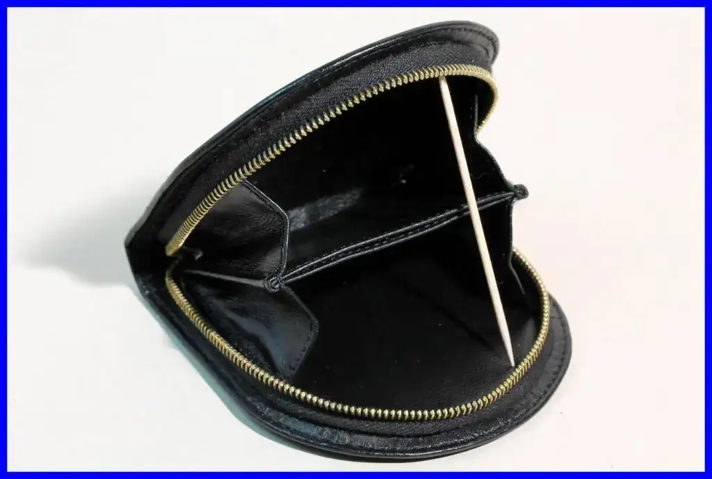Monederos de bolsillo en dos modelos diferentes, realizados en piel negra. Fuente: ebay.