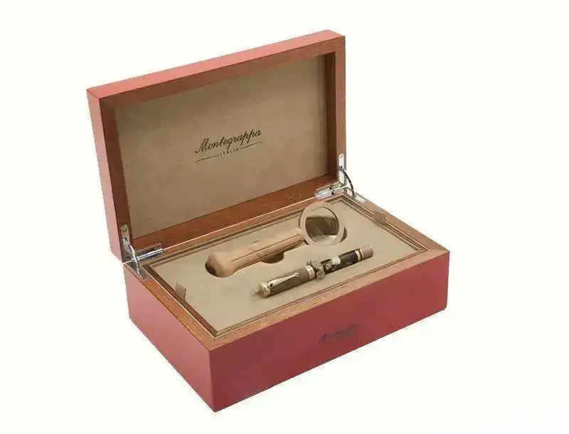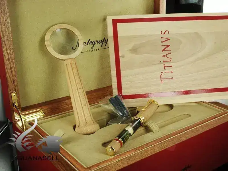 La marca italiana especializada en series limitadas suele ofrecer con sus plumas algún objeto extra inspirado por el motivo de la edición o e personaje al que homenajea. Este caso se trata de una lupa con mango de madera de haya, a juego con el material de la propia pluma, que venía incluida en la edición especial que la firma dedicó al pintor Tiziano.