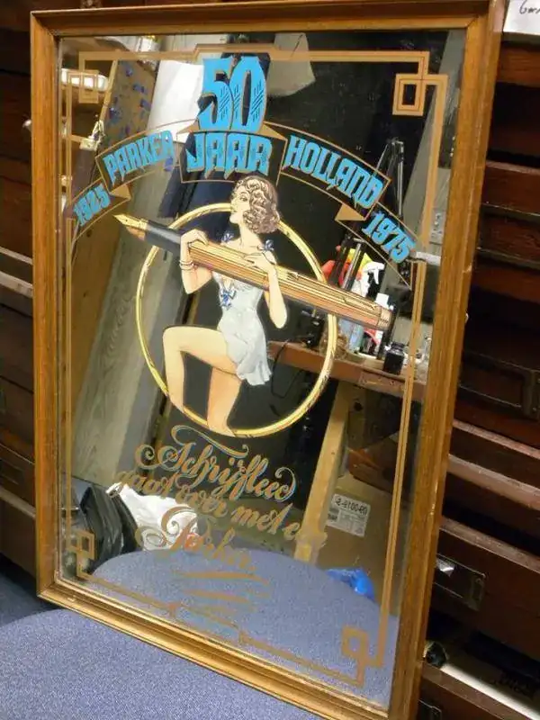 La filial distribuidora en Holanda celebró en 1975 su 50 aniversario con este espejo decorado para lucir en los puntos de venta al público.