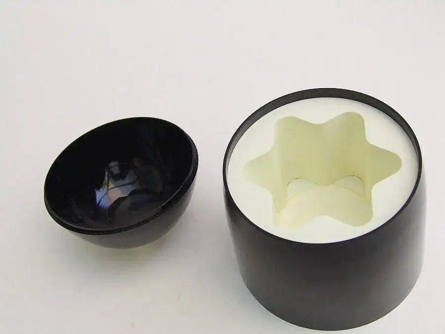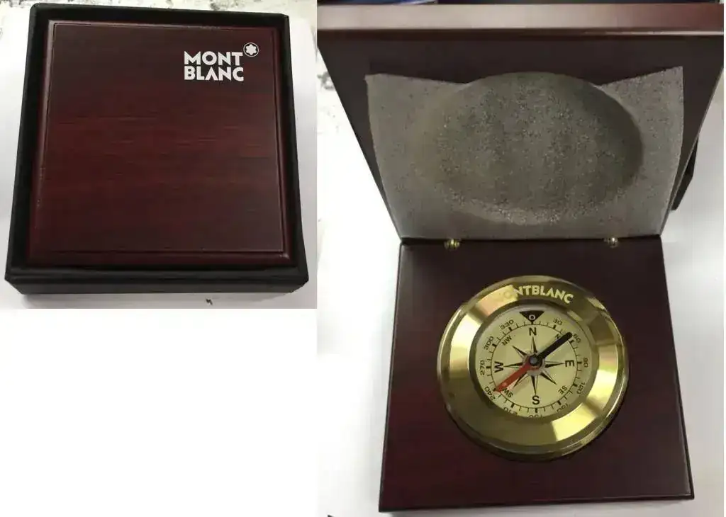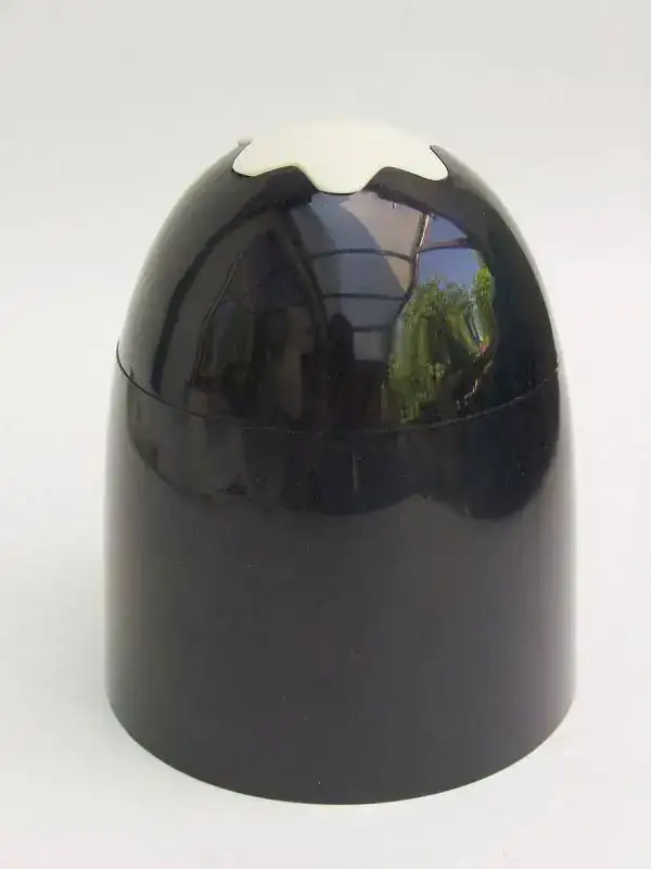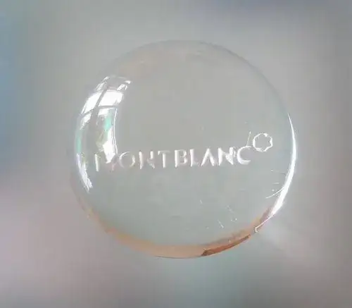 Bote de plástico con forma de corona de capucha de Meisterstuck. Luce el logotipo tanto cuando está cerrado, como cuando se abre. La altura del objeto es de alrededor de 15 cm.