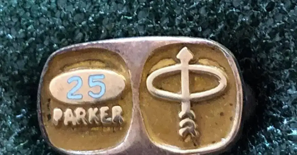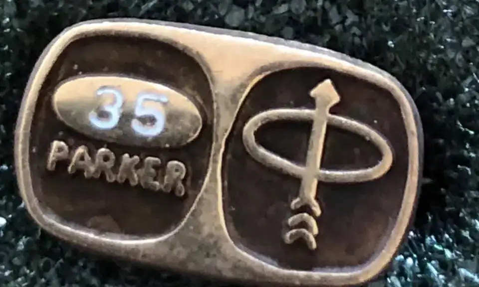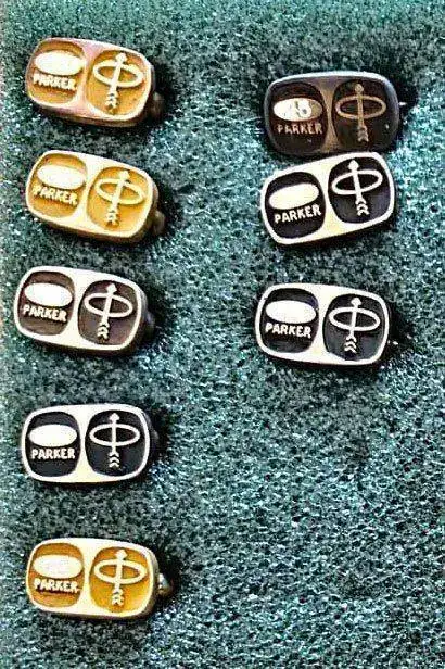 En el caso de Parker, en vez de pines, se entregaban anillos, y los modelos que se han encontrado se recopilan a continuación, utilizando fotos del famoso y reconocido coleccionista Tsachi Mitsenmacher. Se muestran los que celebran permancencias de entre 25 y 45 años.