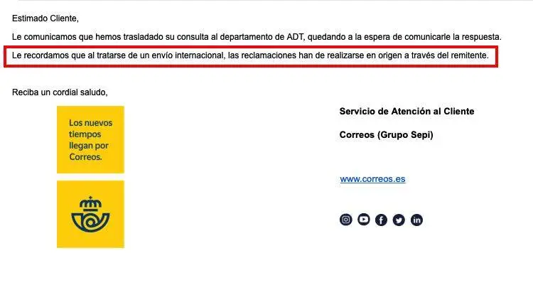 Desde luego, ¡¡Manda huevos!! con la respuesta que me han enviado hoy los de correos con esto de que al ser un envío internacional, las reclamaciones han de realizarse a través del remitente. Si resulta que el paquete hace siglos que en el seguimiento está para salir de los almacenes de ADT en Madrid, para que C... tengo que hacer la reclamación a través del remitente. A mí que me lo expliquen.