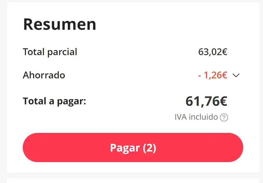 Me indica que el producto está sujeto a un importe de unos 15 euros.