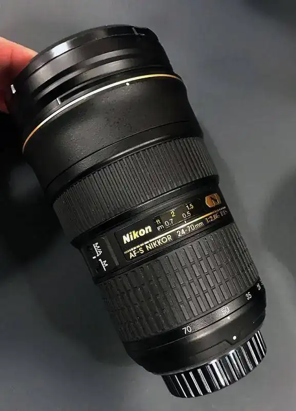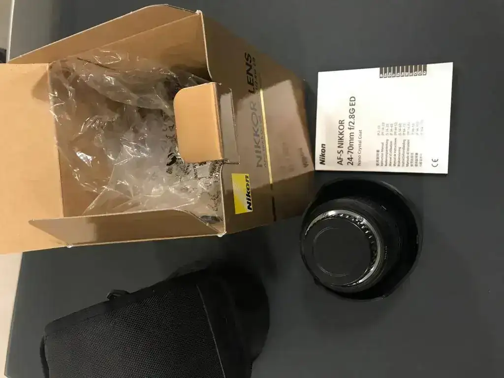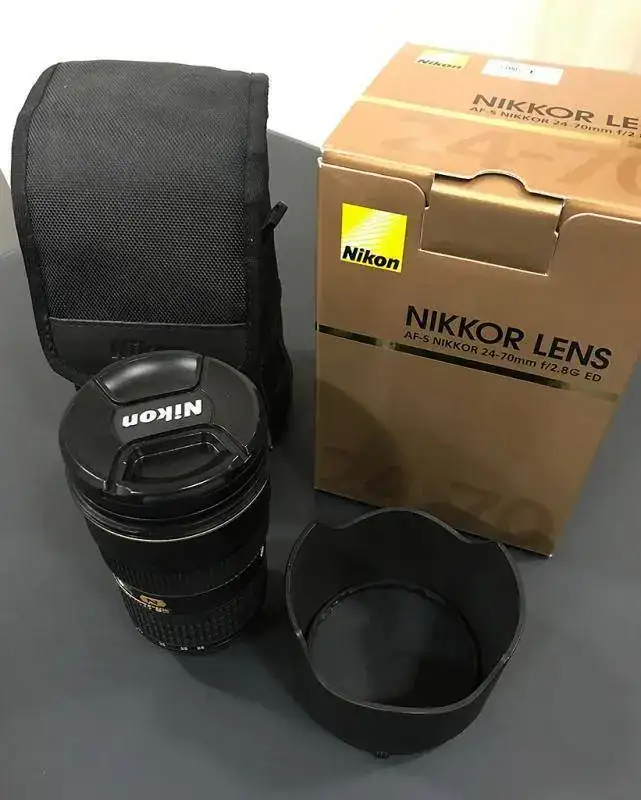 Objetivo "pata negra" AF-S Nikkor 24-70mm 1:2.8G ED. En perfecto estado. Funcionamiento absolutamente perfecto. Sin daños. Se incluye funda de lona, tapas, Parasol, caja, instrucciones... tal como se compró en el C.I.