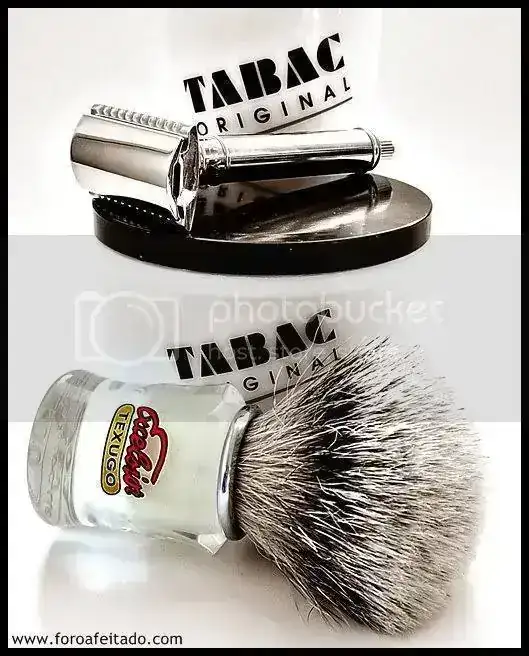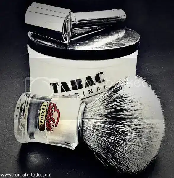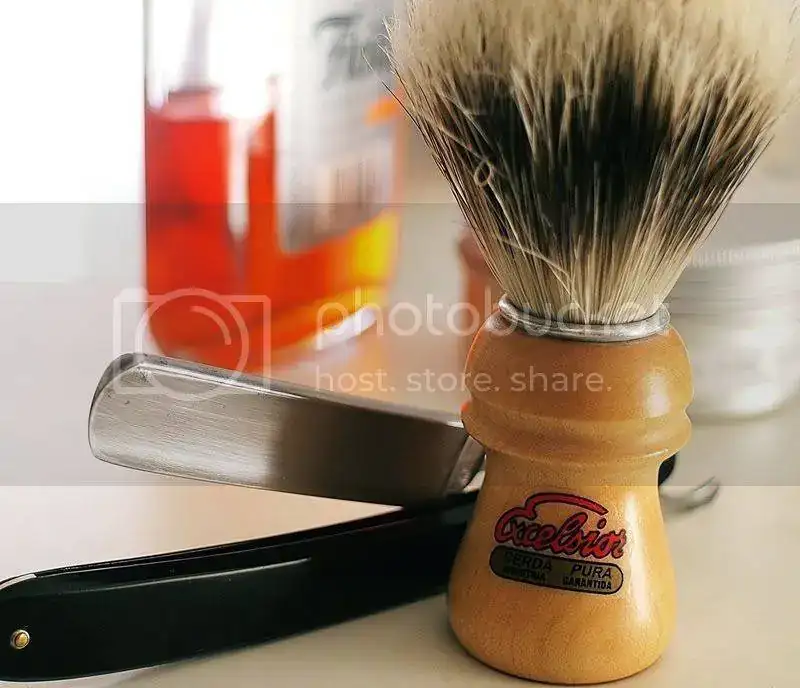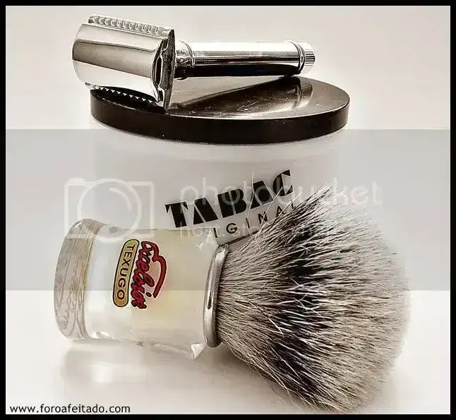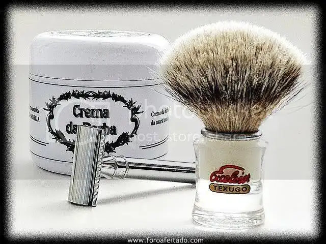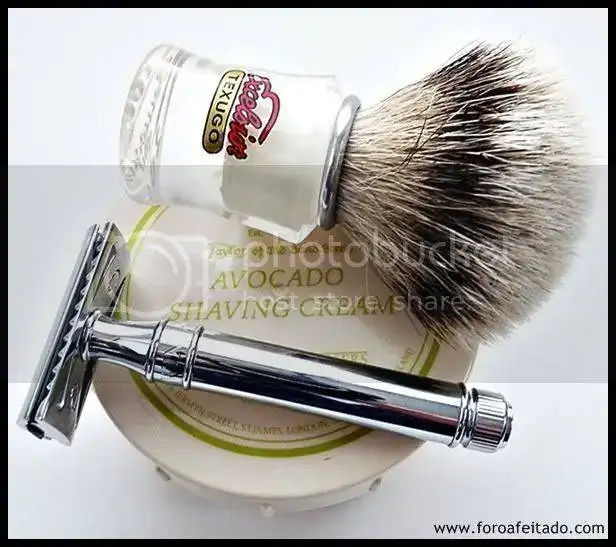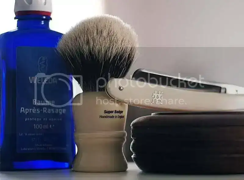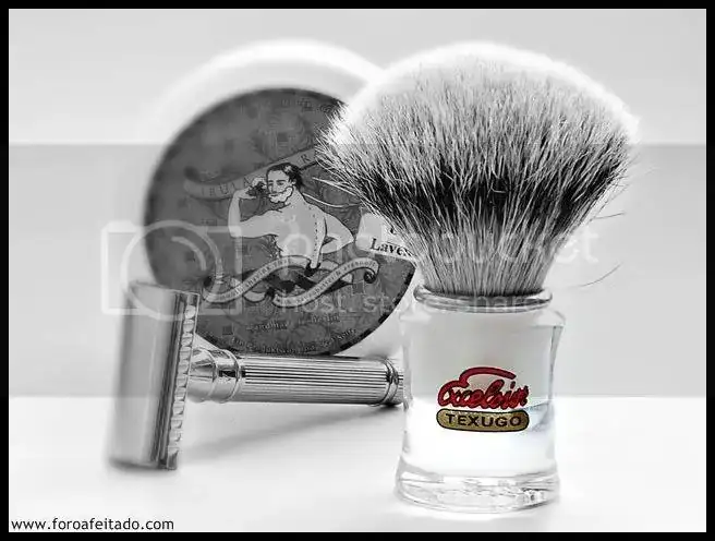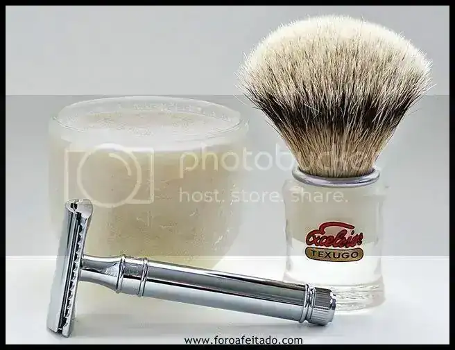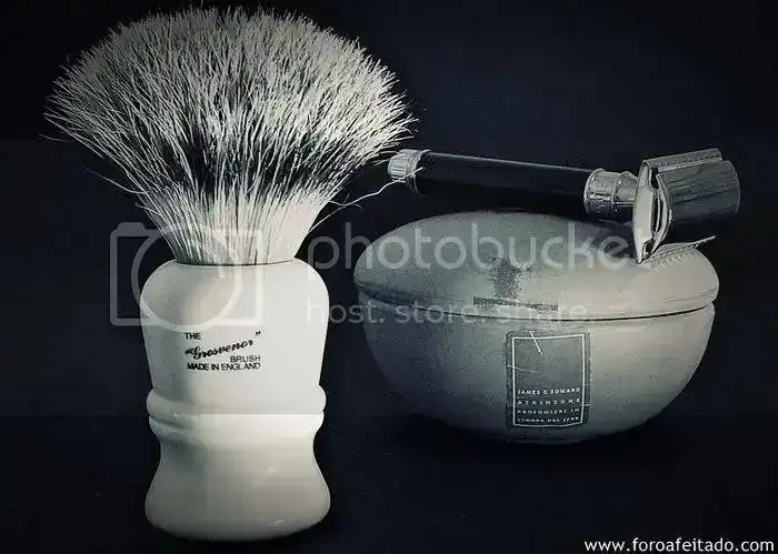 I Coloniali crema da barba/Vulfix 404 cerda/tejon brocha/Edwin and Jagger DE86 con Gillette Superthin/444 piedra de alumbre/Art of Shaving balsamo limon (muestra)