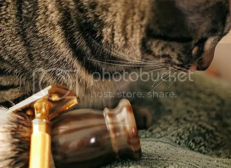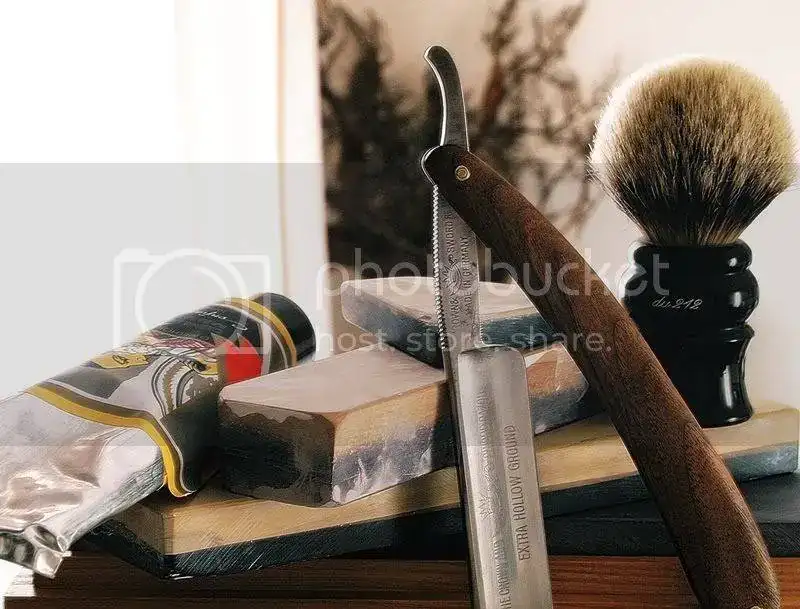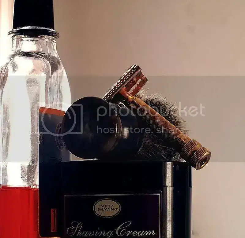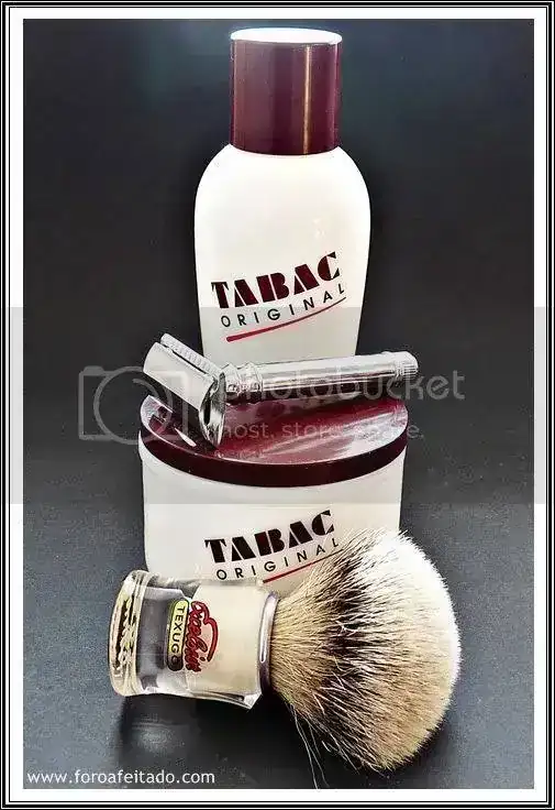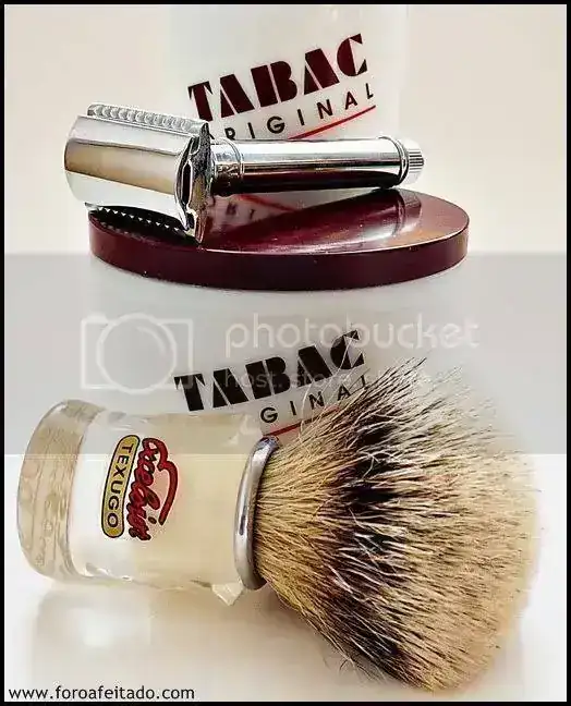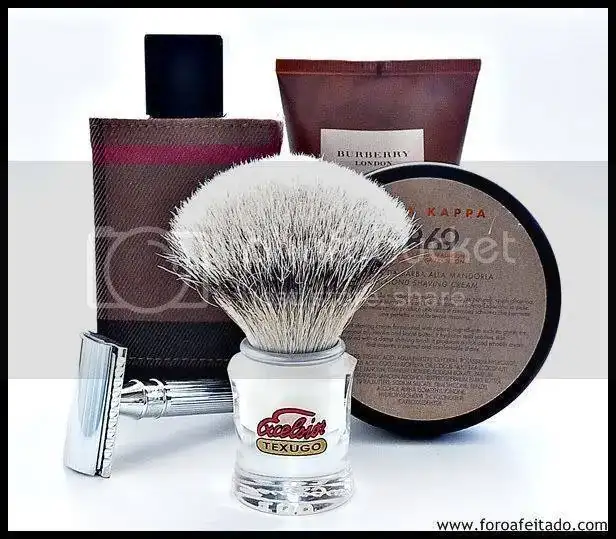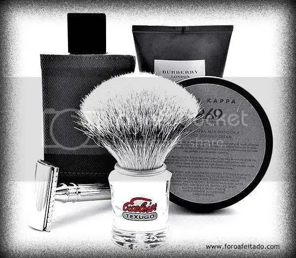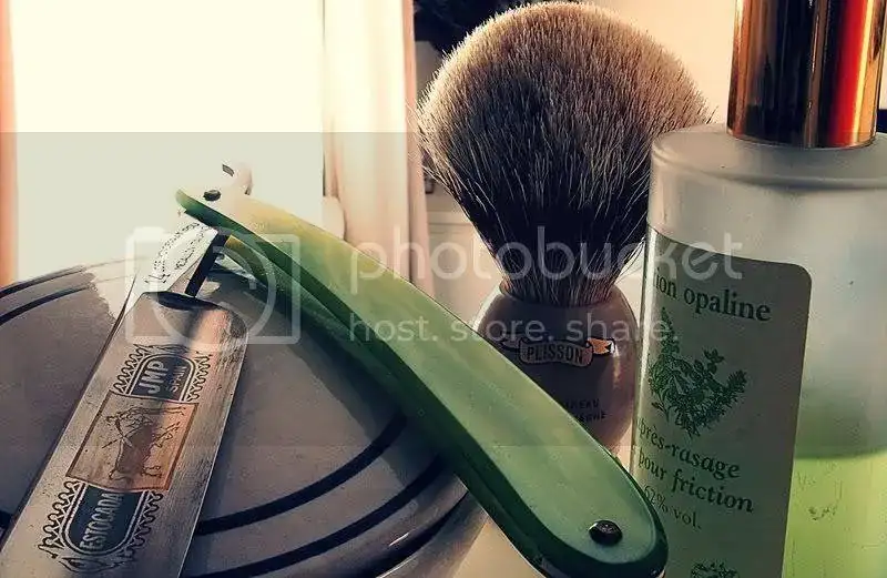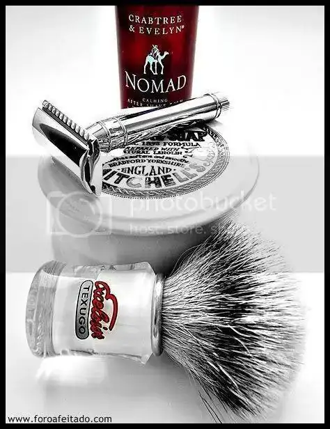 I Coloniali crema da barba/Vulfix 404 cerda/tejon brocha/Edwin and Jagger DE86 con Gillette Superthin/444 piedra de alumbre/Art of Shaving balsamo limon (muestra)