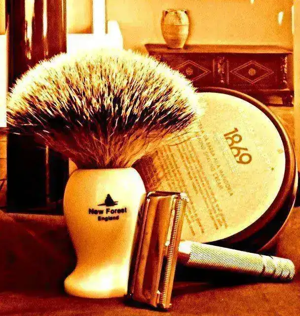 Tabula Rasa Vetiver crema (muestra)/Semogue EL #100 brocha/Edwin and Jagger DE89L con Personna USA blue (para hospitales)/444 alumbre/Weleda balsamo