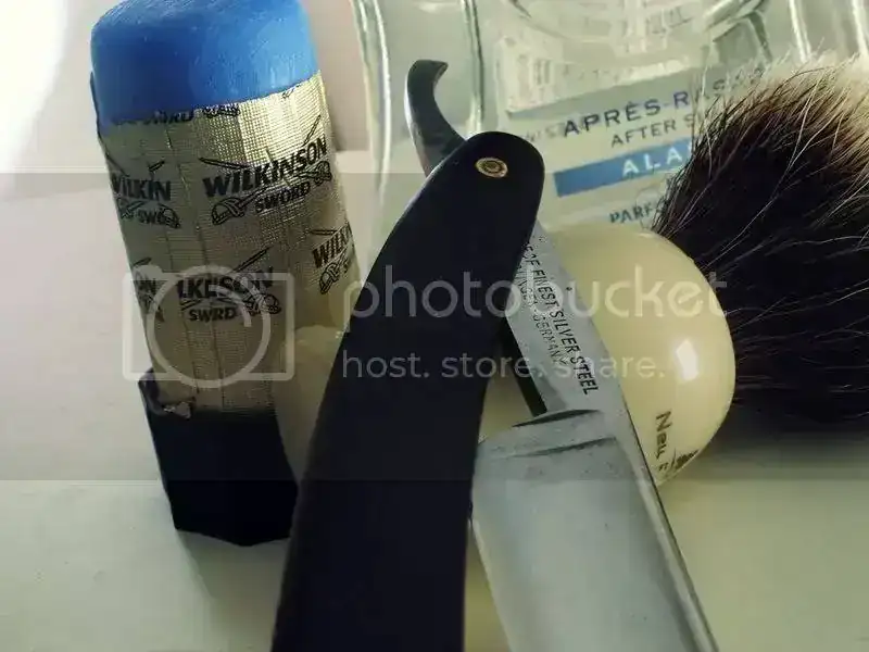 Este afeitado ha sido curioso y fenomenal, en la pasada a favor he notado la navaja un poco áspera,....he parado, le he puesto cinta, la he pasado 25 vueltas por la coticule con agua y luego a la tela y al cuero del suavizador....resultado....suavidad y final feliz.