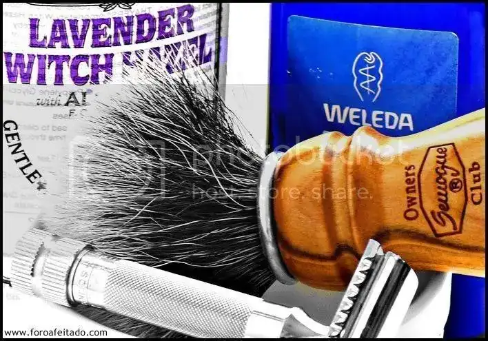 Castle Forbes crema de lavanda/Merkur 33C con RED IP/Semogue brocha/Thayers lavanda locion/Weleda Balsamo