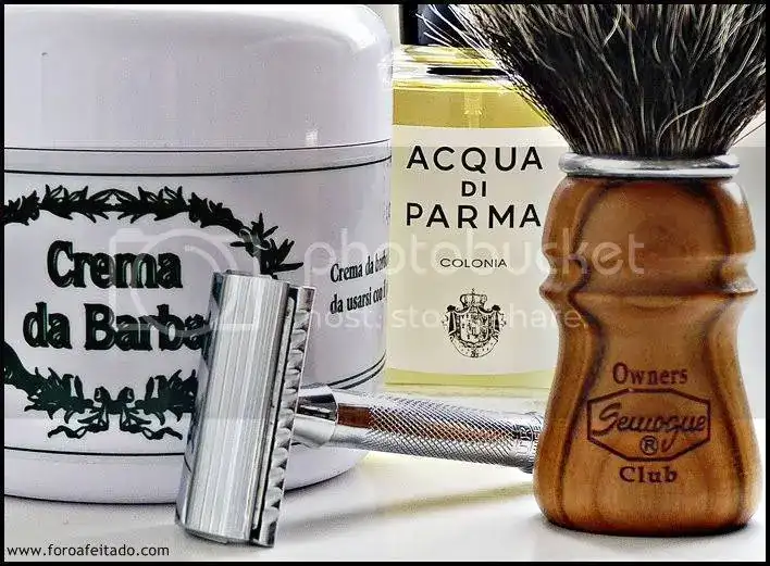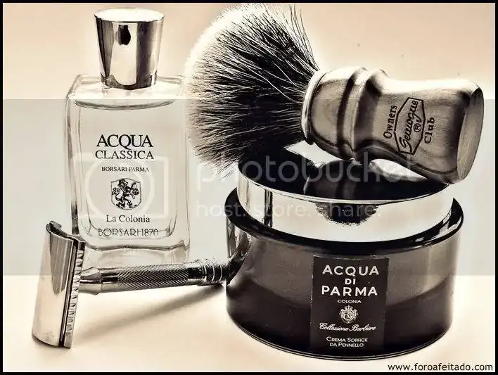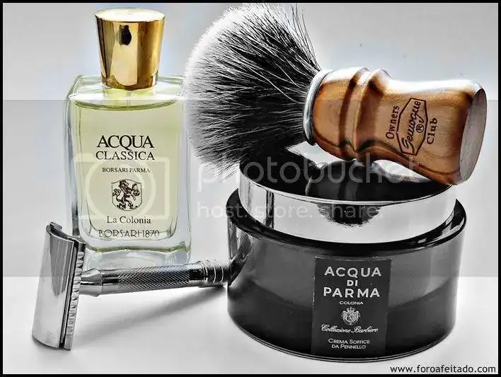 Acqua Di Parma Crema Soffice Da Pennello/Semogue SOC tejon dos bandas brocha/Merkur 33C con RED IP/Kielhs Balsamo/Acqua Classica Borsari Parma La Colonia.