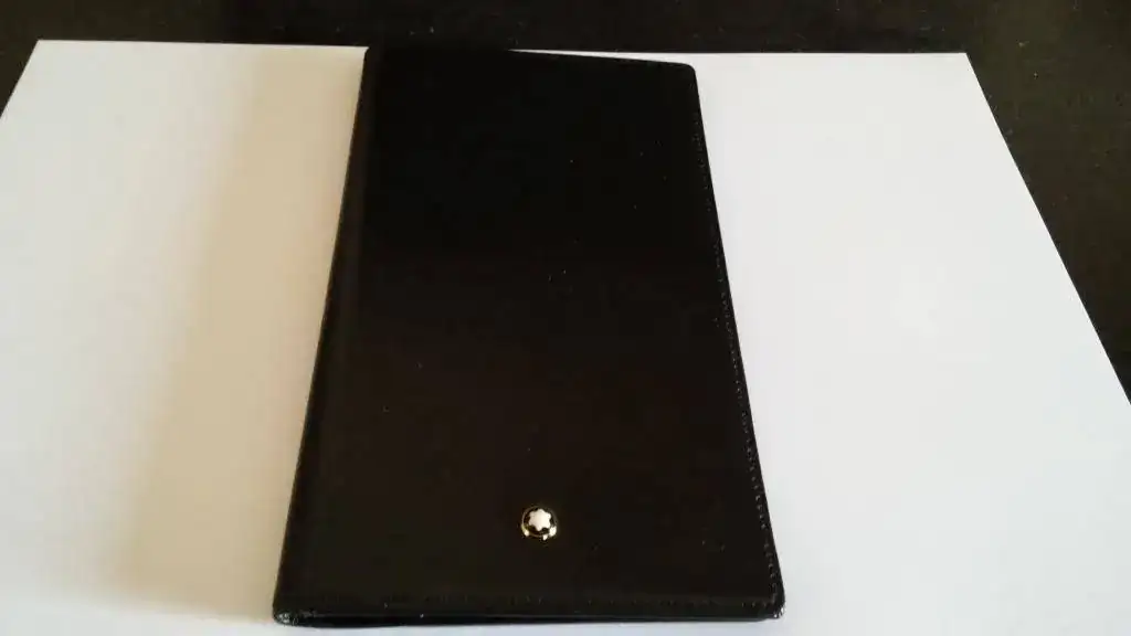 Habiendo solicitado el oportuno permiso, pongo a la venta una agenda de bolsillo Montblanc en piel negra.