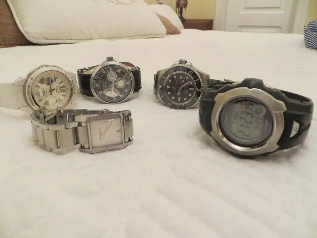 Aquí os saco unas fotitos, con mi habitual habilidad, incluída una foto de familia con otros relojes que andaban por casa, algunos de los cuáles son (o usa, que el seiko me lo roba…) de mi mujer…