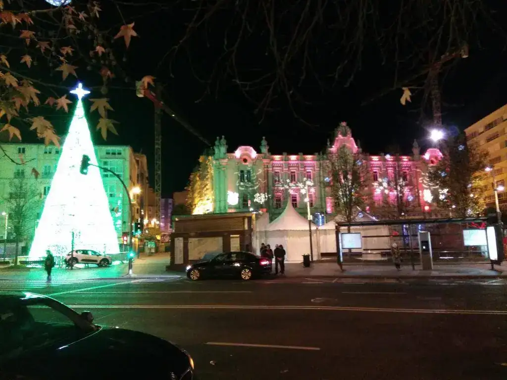 La magnifica entrada de la Joyería, adornada con los reflejos de la Navidad.