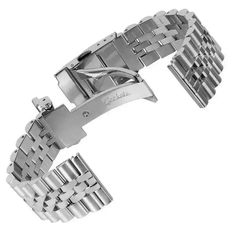 He pedido también una correa de cota de malla que me parece bastante correcta para el precio que tiene. Cierre desplegable con pulsadores y pasadores de fácil y rápida colocación, (ya veremos, que no he probado todavía). Vuelvo a echar en falta un grabado de la marca o logotipo en el cierre. Presentada en caja de cartón negra con una gamuza en su interior.