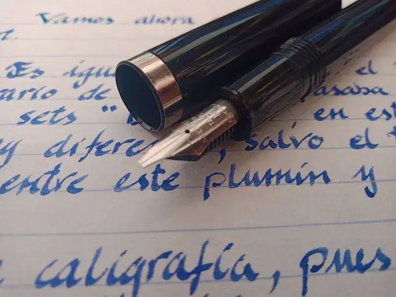 Este modelo jamás me ha gustado y lo encuentro uno de los más vulgares y con menos glamour de la historia de las plumas estilográficas, pero he de reconocer que siendo unos plumines itálicos puros, su suavidad al escribir escapan de toda lógica.