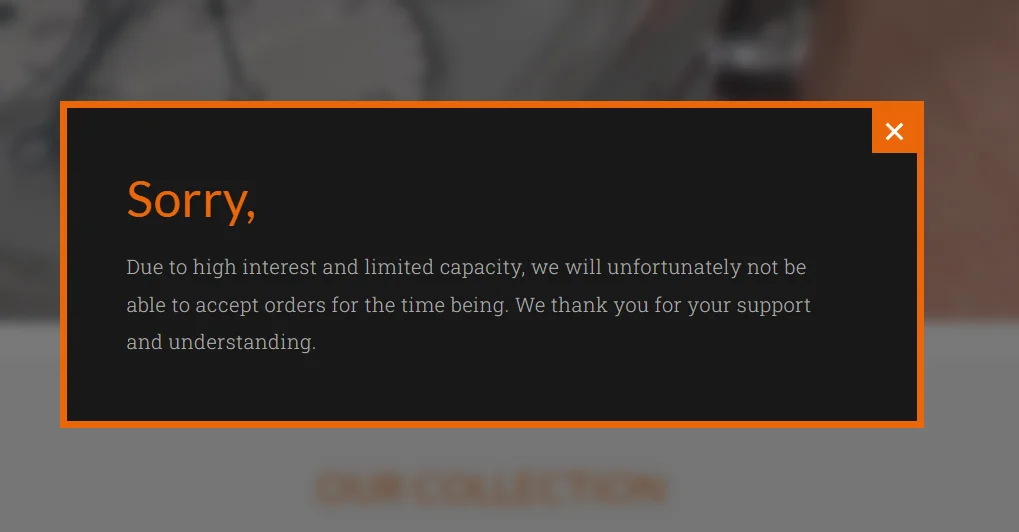 Algunos conoceréis a los hermanos Tim y Bart Grönefeld, reputados relojeros holandeses cuyo éxito obliga a los aficionados a esperas de años para algunas de sus piezas . Como muestra, este es el pop-up que te encuentras al acceder a su página: