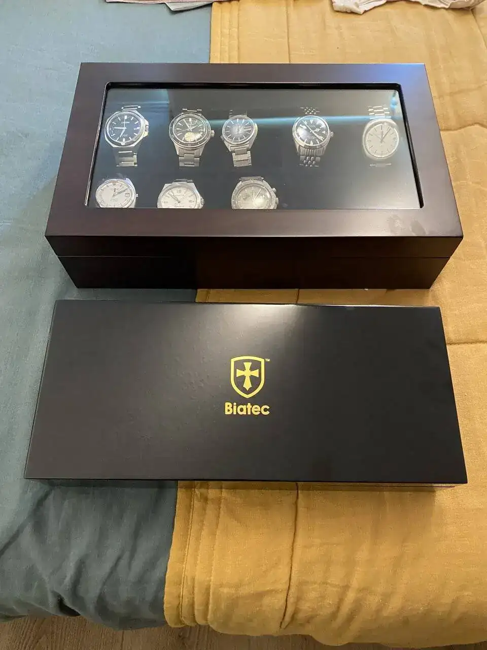 Siempre me gustó guardar los relojes en sus cajas originales, pero al mover un poco mi colección hacia lo vintage decidí por primera vez guardarlos en una caja. Lo compré para el número justo que tengo (sin contar los 2 que decidí no poner en la caja porque tienen menos rotación).