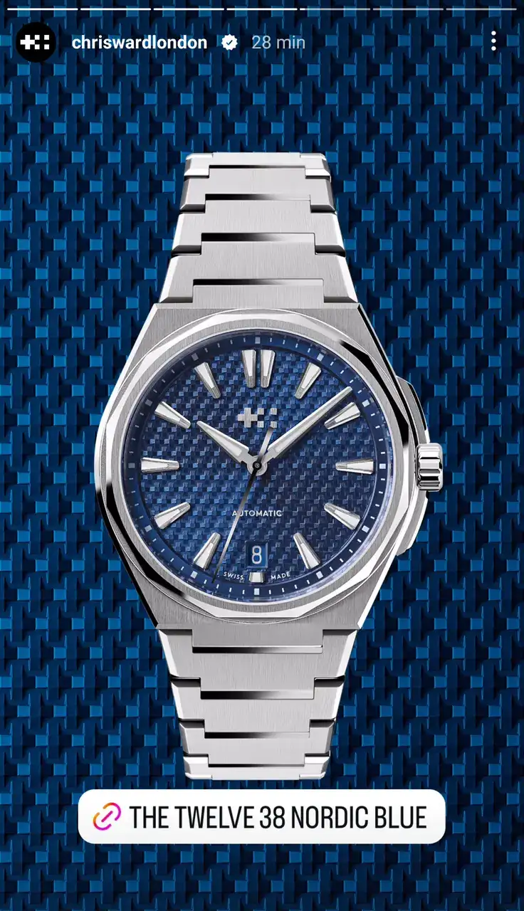 Buenos días, compañer@s. Llevo tiempo con la idea de que mi próxima incorporación sea el CW The Twelve en azul, el color que ellos llaman Nordic Blue. Lo único que me echa para atrás, además de mi exceso de piezas, es el tamaño, pues lo hay en 36 o 40 mm. O un poco pequeño, o un poco grande, creo yo. Seguramente me habría decantado por el de 40, que lleva fecha a las 6.