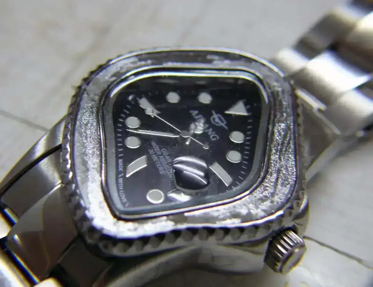 Al llegar el bisel venía medio suelto, ya que estaba pegado con algún tipo de pegatina gomosa que no hacía bien su trabajo.