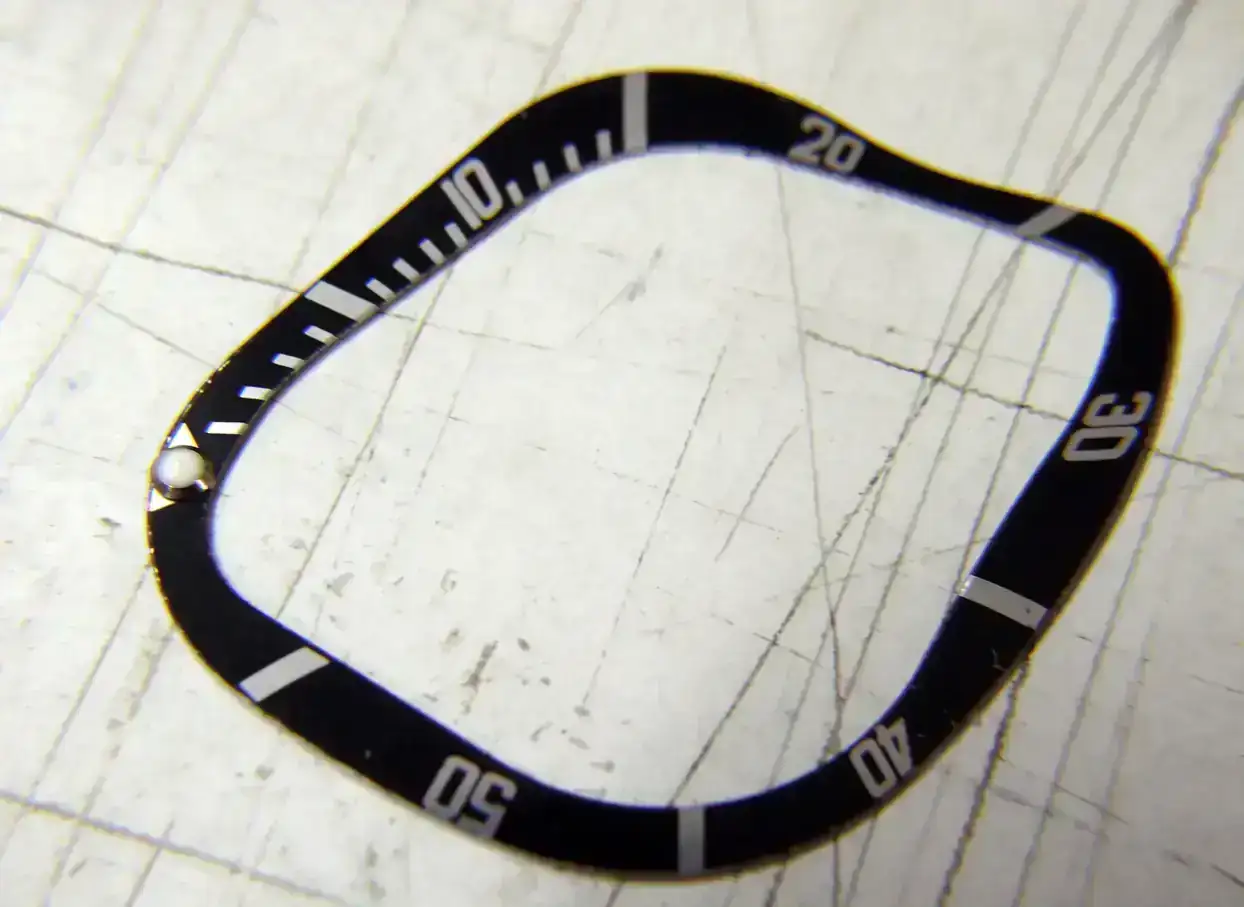 Despegué con cuidado la chapita serigrafiada y limpié cuidadosamente el hueco del bisel.
