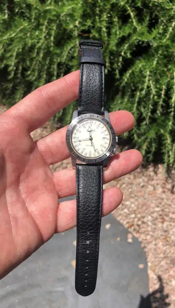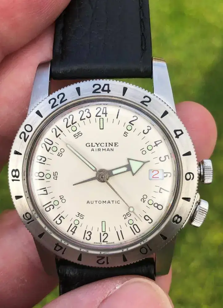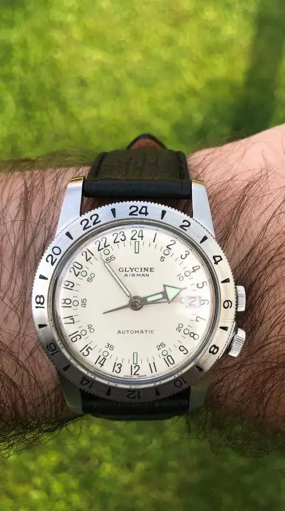 En este caso se trata de un Glycine Airman nº1 en versión purista (esfera 24 horas con dos usos horarios).