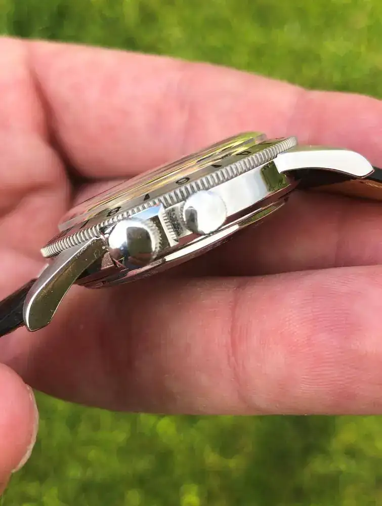 El diametro es de 36mm y el "lug to lug" es de 45, eso le da una presencia espectacular en la muñeca.