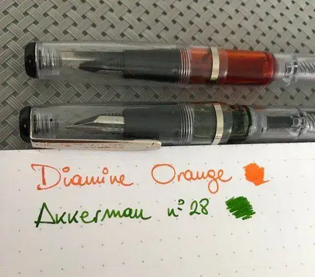 ¿Habíais oído o leído algo al respecto? En la muestras de escritura que he visto en la pantalla del ordenador, el parecido es enorme en algunos casos. Hay algunos foreros de FPN que, no obstante, matizan en sus revisiones ciertas diferencias en el comportamiento de ambas tintas, como, por ejemplo, que las Akkerman traspasan menos o hacen menos eco que la Diamine, o que son menos saturadas y más fáciles de limpiar que estas. ¿Puede ser que se hayan inspirado en la misma carta de colores, que trabajen con los mismos proveedores de pigmentos o, sencilamente, como he leído en un post, que la tinta Akkerman es tinta Diamine reembotellada? ¡Oh, queridos y queridas gurús de la tinta, espero vuestras respuesta!