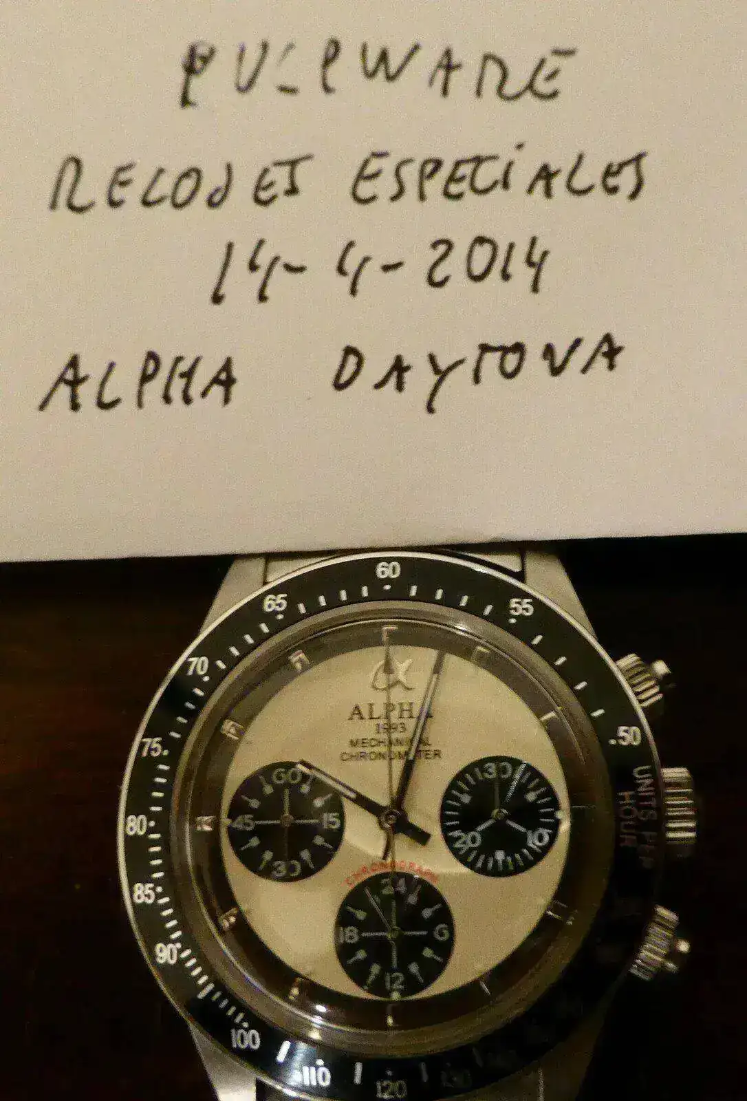 Vendo este Alpha Daytona, reestreno total, me ha llegado hace unos días, y satisfecha mi curiosidad, le he quitado los plásticos, lo he llevado un día por casa y lo pongo a la venta, siendo honesto conmigo mismo, no lo voy a usar, y no es porque no sea una pieza extraordinaria, que lo es, sino porque simplemente, no es para mi.