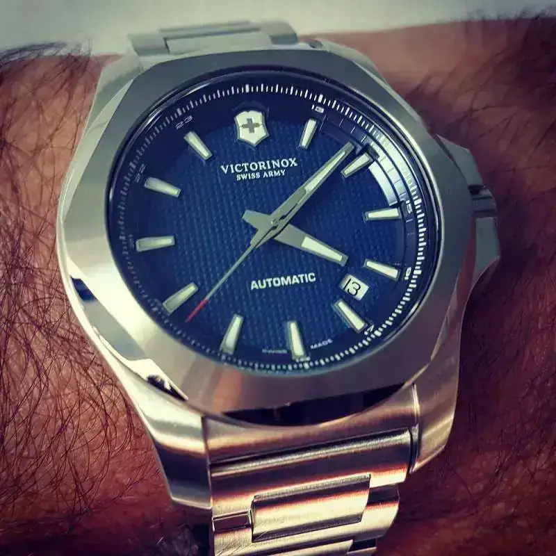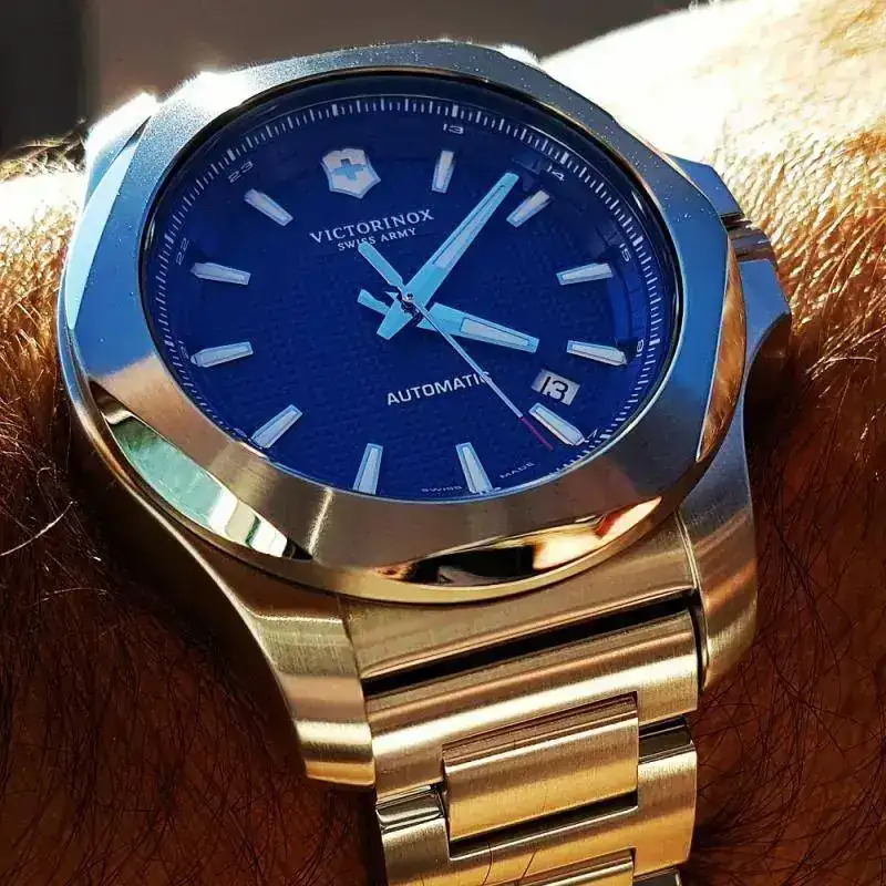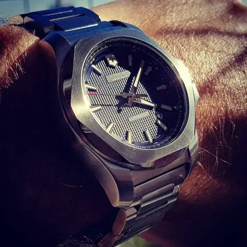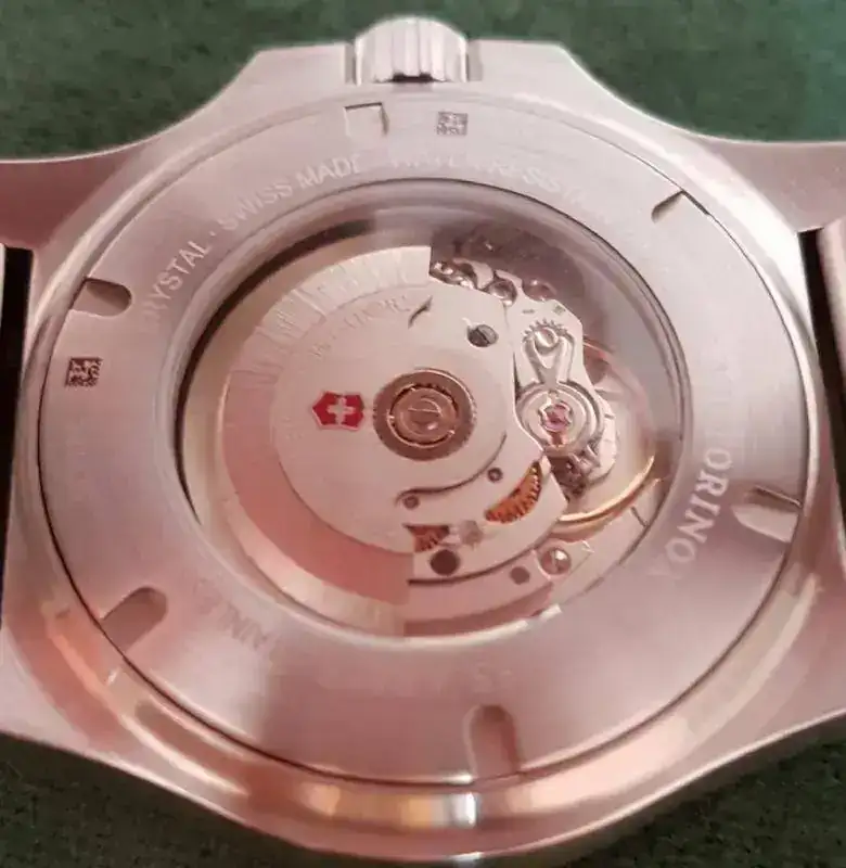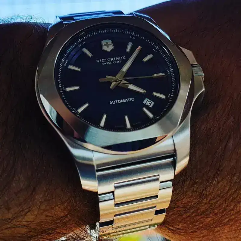 Por otro lado hace algunas semanas atrás tb me había hecho con un precioso Victorinox Swiss Army INOX. Mechanical (Auto) muy fotogenico de 43mm 200M Cal. ETA 2824/2 y sus justitas +/- 38 hs de RM, Ref. #241835 y ya que estoy aprovecho este hilo para presentarlos juntos.