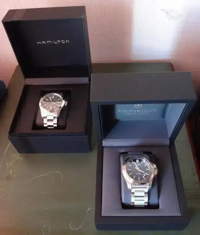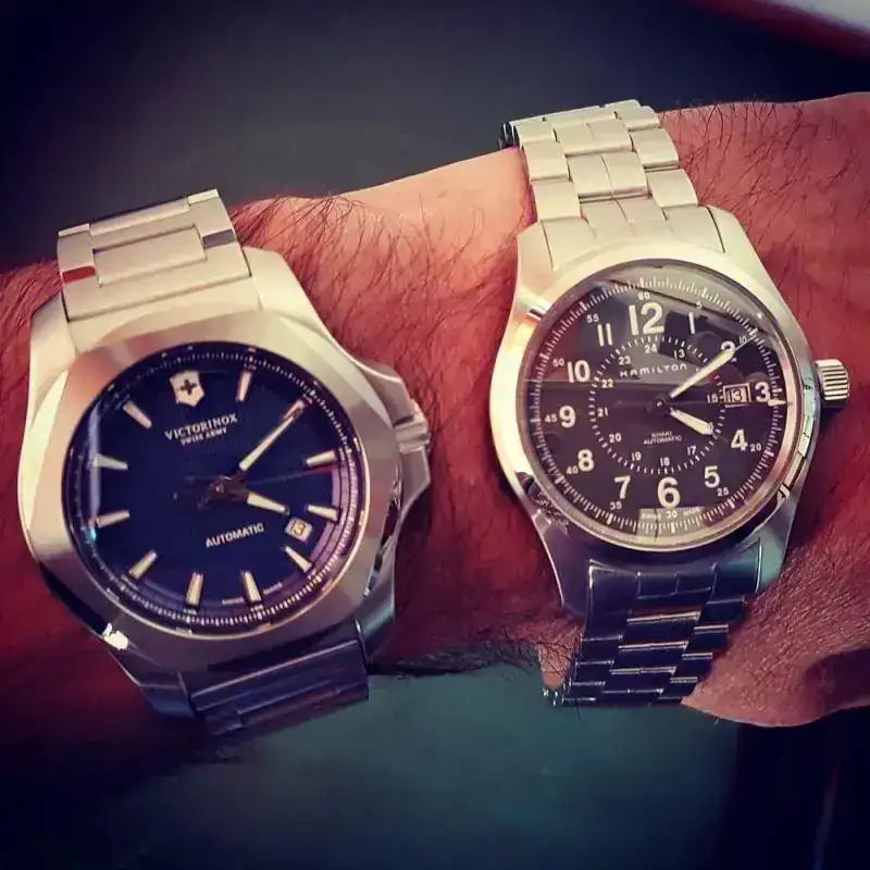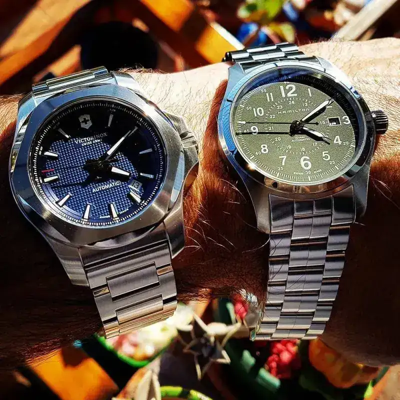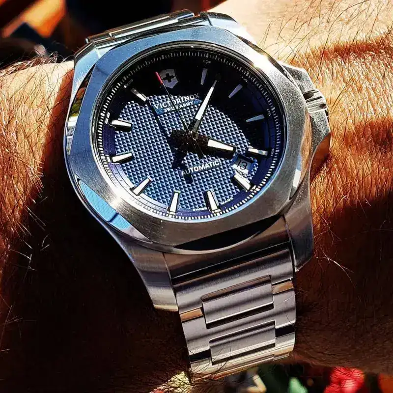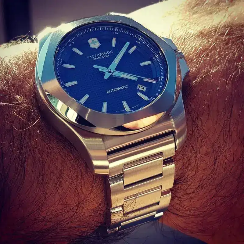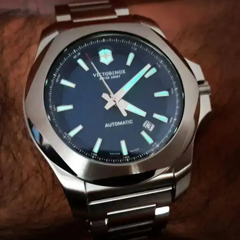 Por otro lado hace algunas semanas atrás tb me había hecho con un precioso Victorinox Swiss Army INOX. Mechanical (Auto) muy fotogenico de 43mm 200M Cal. ETA 2824/2 y sus justitas +/- 38 hs de RM, Ref. #241835 y ya que estoy aprovecho este hilo para presentarlos juntos.