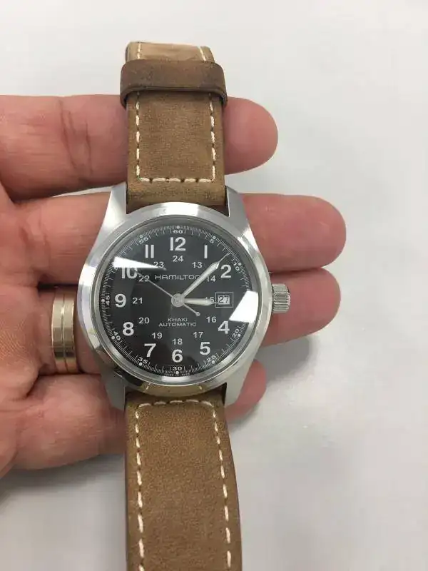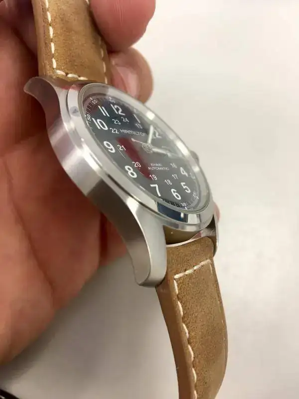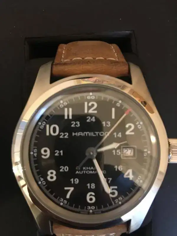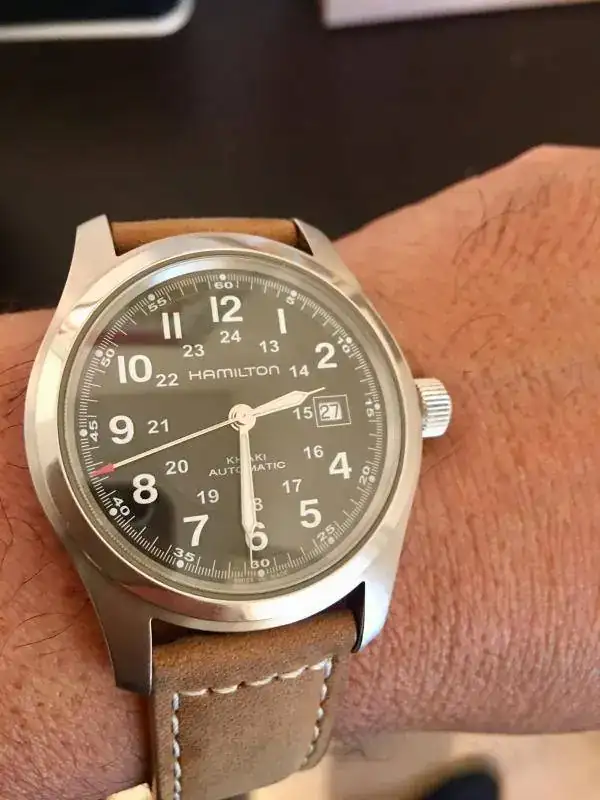 Algunos de vosotros os acordaréis que presenté a principios de septiembre mi Hamilton de 38m y me asaltaban las dudas sobre el tamaño. Vuestros sabios consejos fueron en su mayoría que lucía bien en muñeca y que era un revival del original. Pero yo soy muy cabezota y me lo veía pequeño. Gracias a un genial mercante de este foro, kikoskate decidí dar el paso y vender el mío para adquirir el mismo en 42. Ahora estoy totalmente feliz con el resultado y es que no hay nada como seguir los instintos.