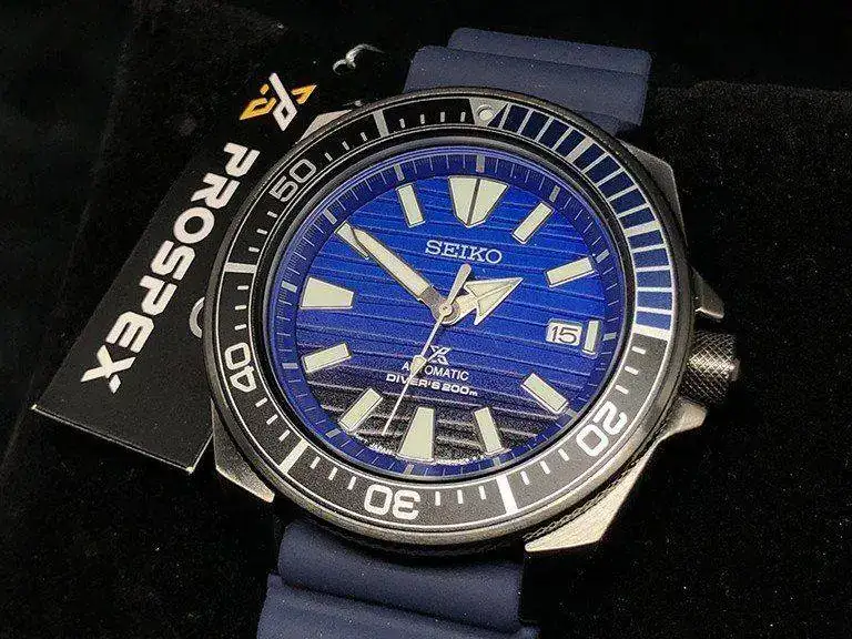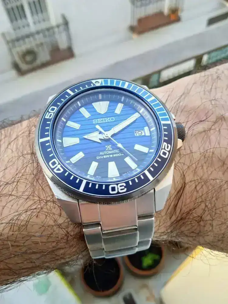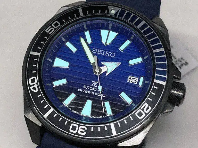 Es el conocido Seiko Samurai Save the ocean SRPD09, con la caja en negro y brazalete de silicona, con una esfera que me enamoró la primera vez que la ví.