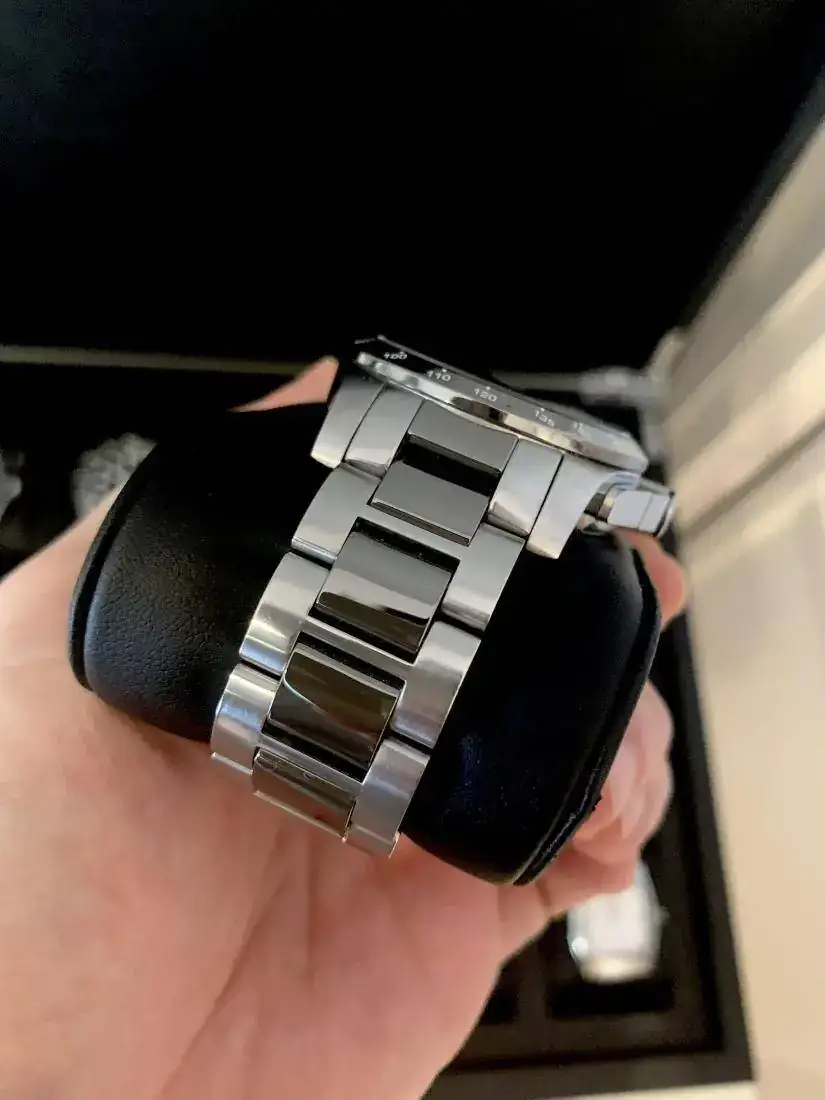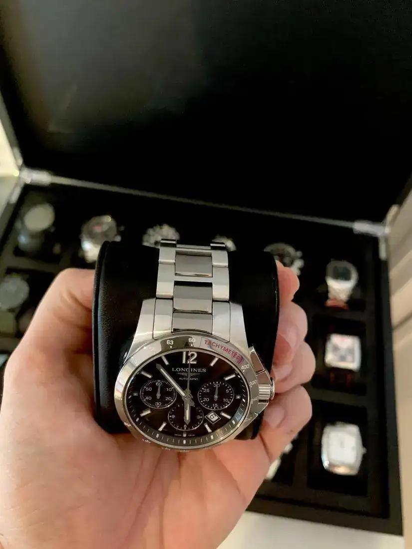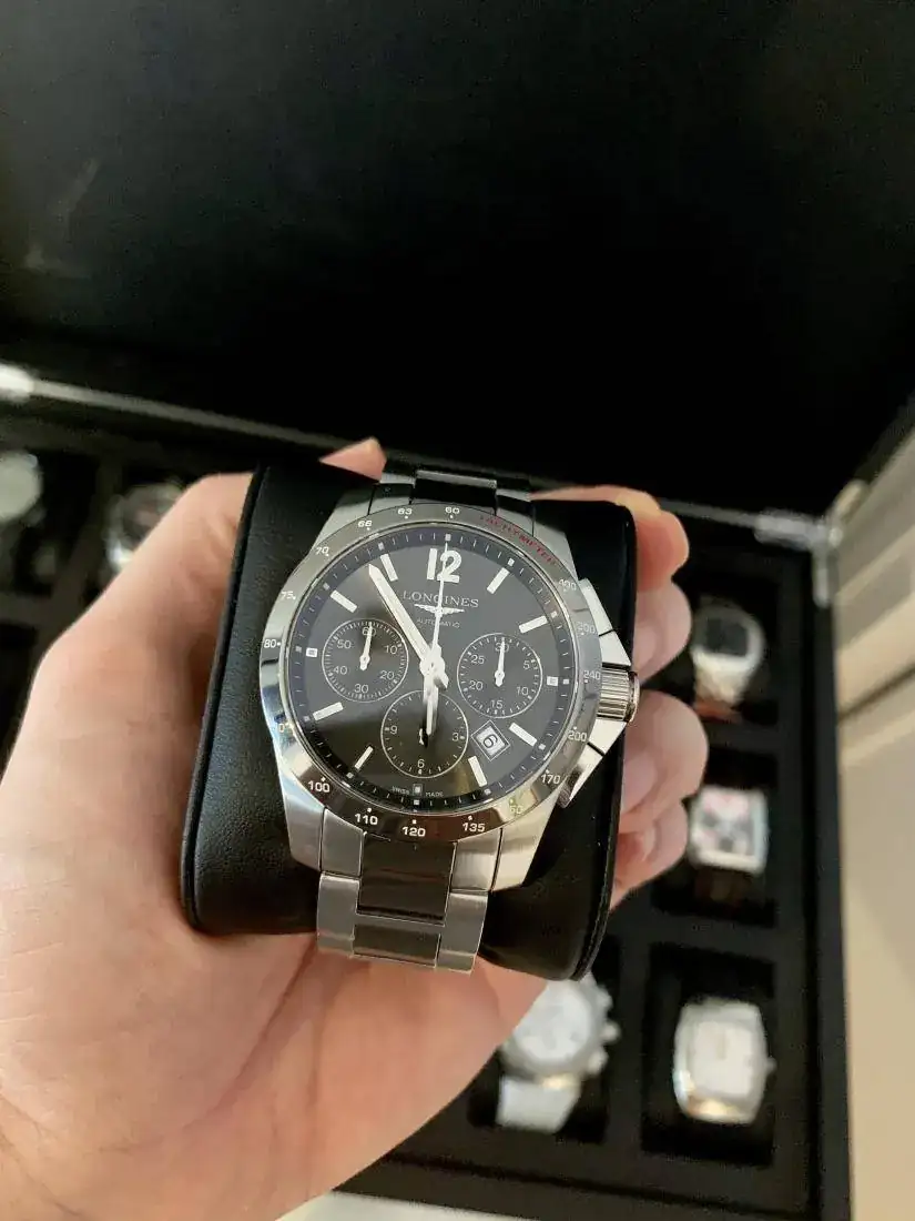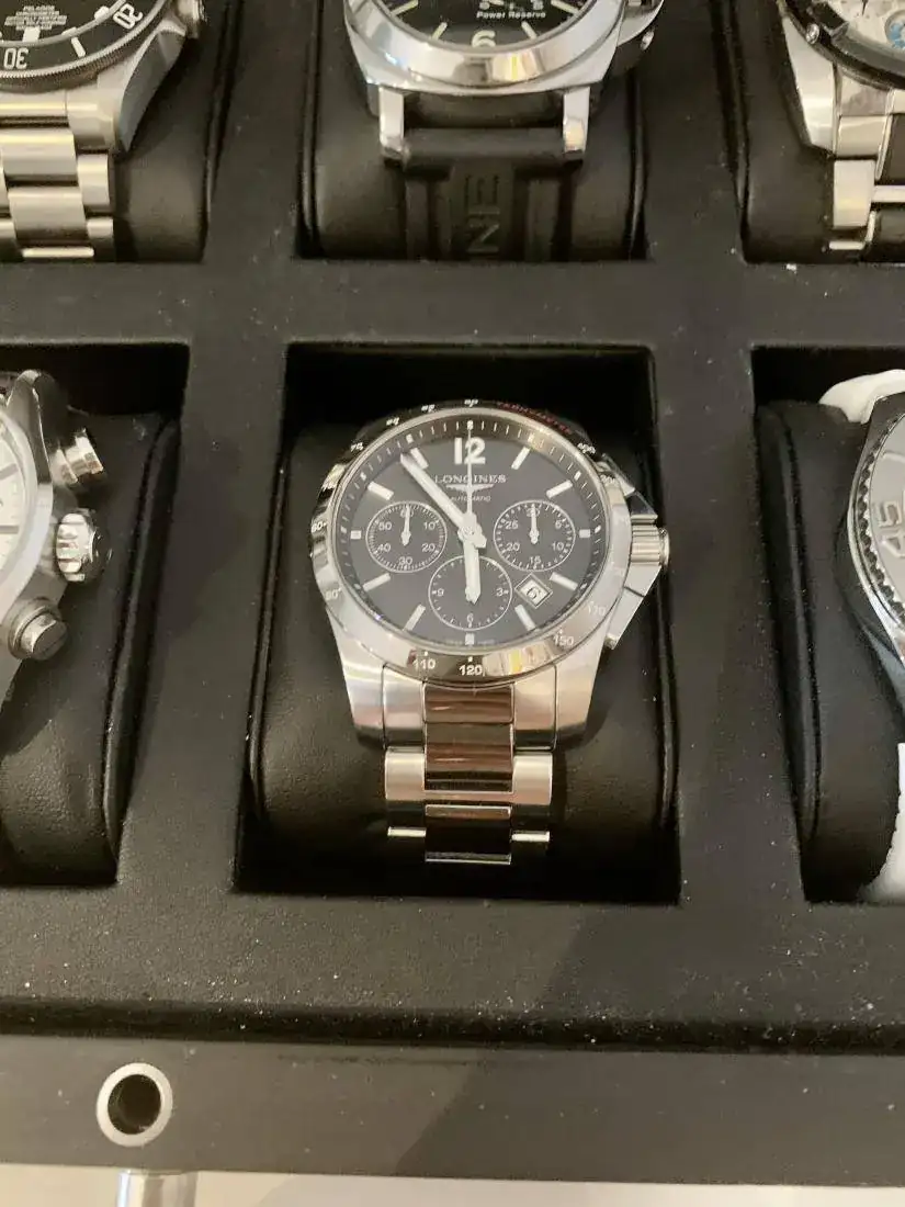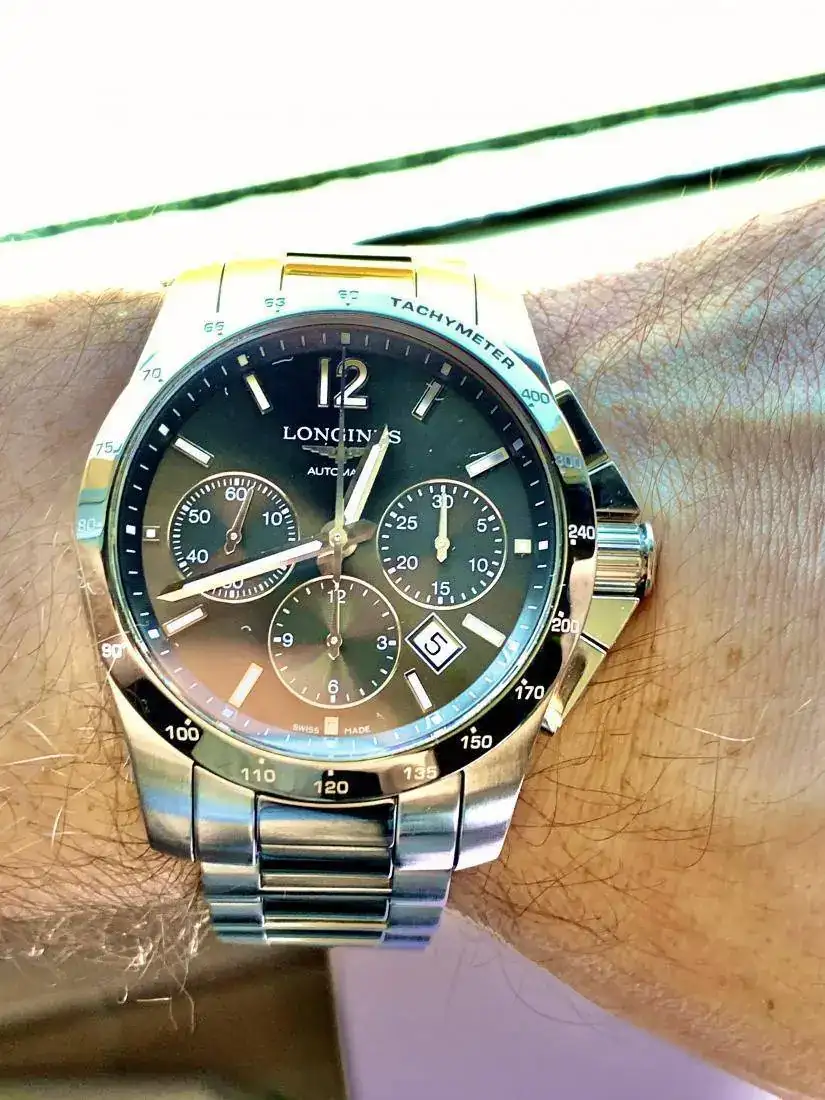 Pues quería darme un capricho y estaba decidido a ir a por el nuevo hidroconquest cerámico. Pero al ser mis tres ultimas adquisiciones divers, esto me echaba un poco para atrás. Tenía ganas de volver a probar Longines, solo tuve un hidroconquest chrono del modelo anterior y me dejó buen sabor de boca. Así que decidí a cambiar de objetivo y he acabado con un conquest chrono cerámico. No está tan visto como otros modelos de la marca pero rebosa calidad. El bisel cerámico gris y la parte media de los eslabones en cerámica le dan un aspecto espectacular. El color de la esfera en vivo impresiona. No he visto hablar de él en el foro mucho, ni venderse en el subforo de compraventa , por lo que no será un modelo que haya atraído a los aficionados a este mundo, no se porque habrá sido, ¿alguno sabe porque? pero desde luego la impresión que me ha dado es que es un reloj con un acabado superior a muchos otros más caros. Estoy que babeo con el, las fotos no hacen justicia del acabado, calidad y contrastes de colores que tiene.