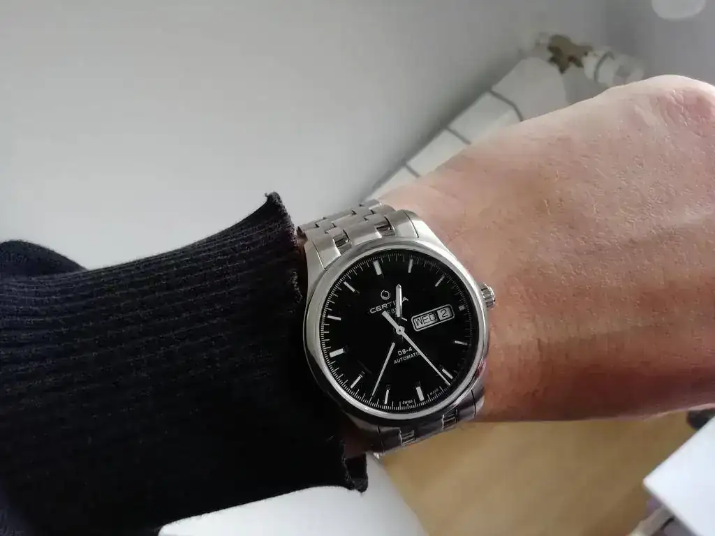Aquí el chiquitín, 38mm de caja, en principio se me antojaba pequeño, pero la distancia entre asas hace que no se vea nada mal, es de lejos el reloj más cómodo que tengo, por la forma de la caja, y sobre todo por el armis.