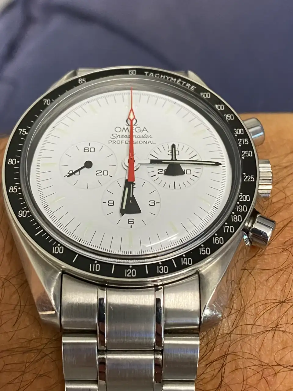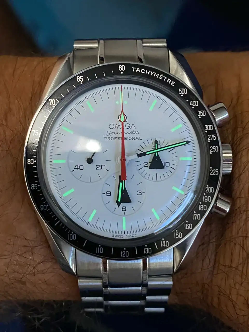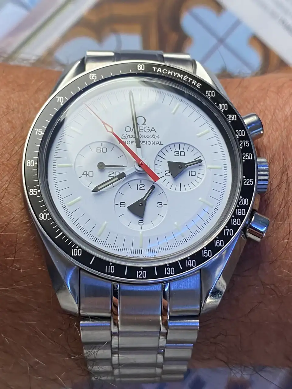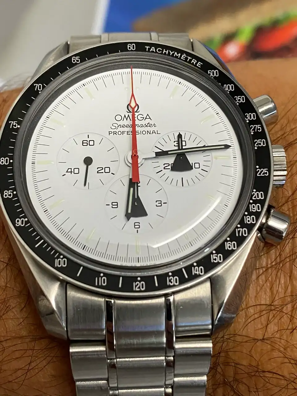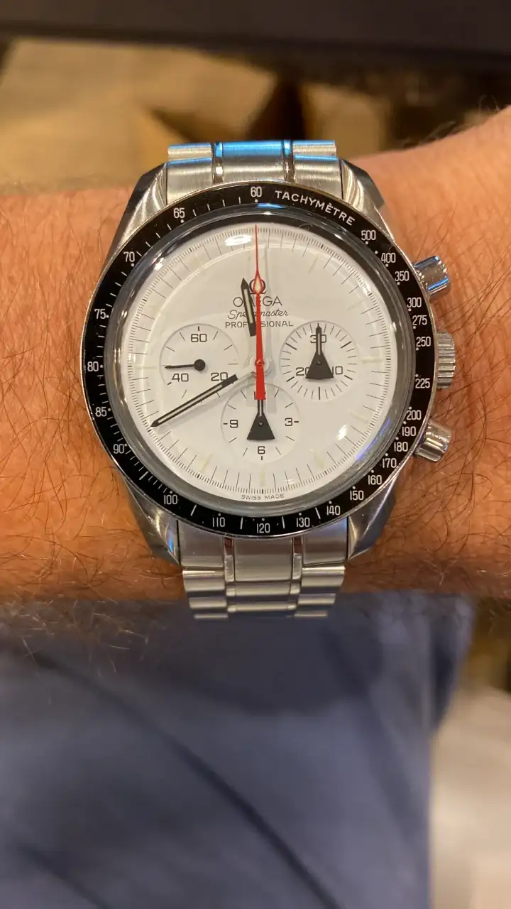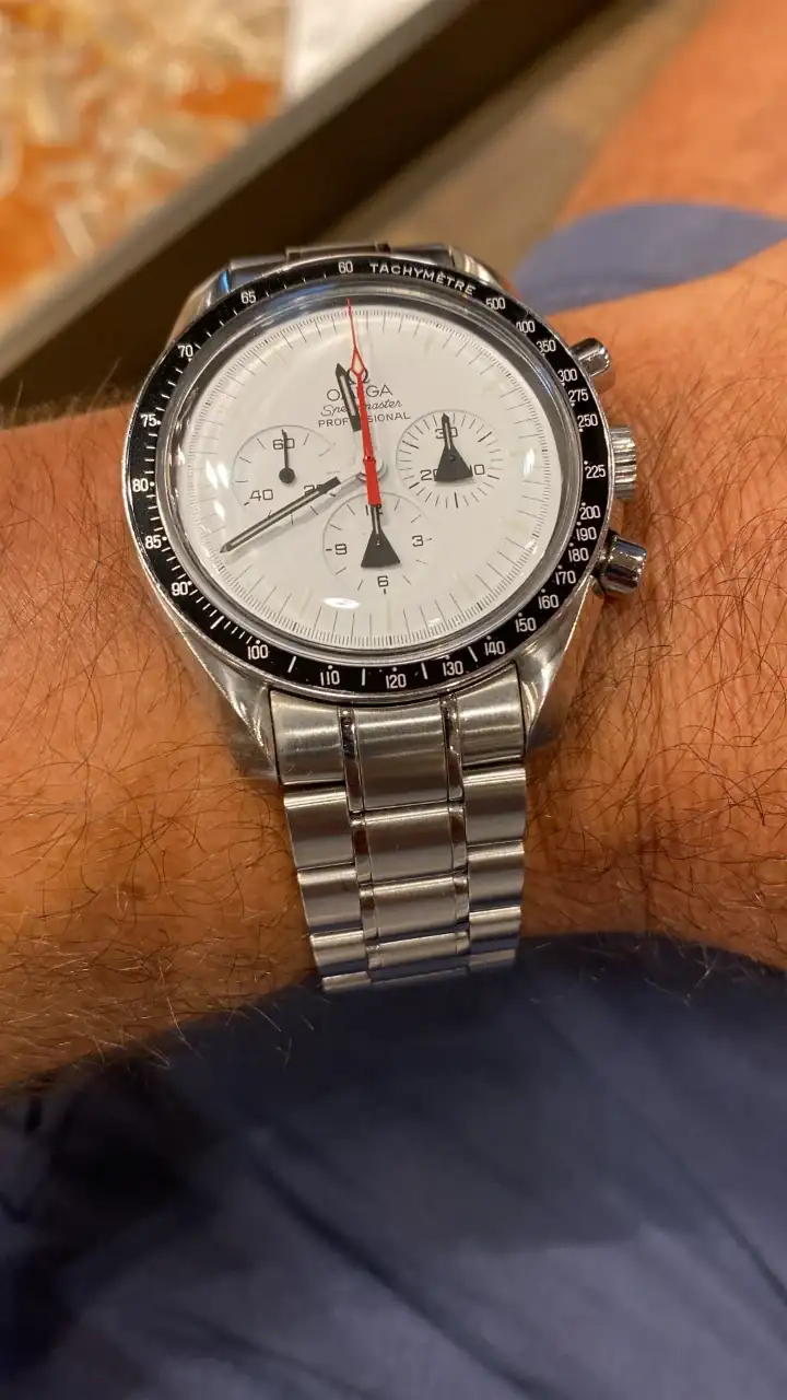 Tras llevar mucho tiempo pensando en poder añadir algún Speedmaster en blanco a la colección, realmente pocos eran blancos puros, realmente blancos. El Alaska Project era el más blanco de todos hasta la fecha, y el que más me ha gustado desde siempre, así que llevaba mucho tiempo pensando en tener uno pero, viendo la locura de los precios que han alcanzado últimamente en el mercado, aparqué la idea hasta ver si bajaban. Tras la reciente salida del nuevo Speedmaster Moonwatch Professional con dial blanco, consideré realmente comprar uno en lugar del Alaska Project, pues también es muy bonito y considerablemente más barato. Pero, tras mucho pensarlo, desestimé la idea: El Alaska Project me sigue pareciendo mucho más bonito, más blanco, y sobre todo más especial que el nuevo Speedy en blanco, que además no es una edición limitada. Así que seguí con mi búsqueda.
