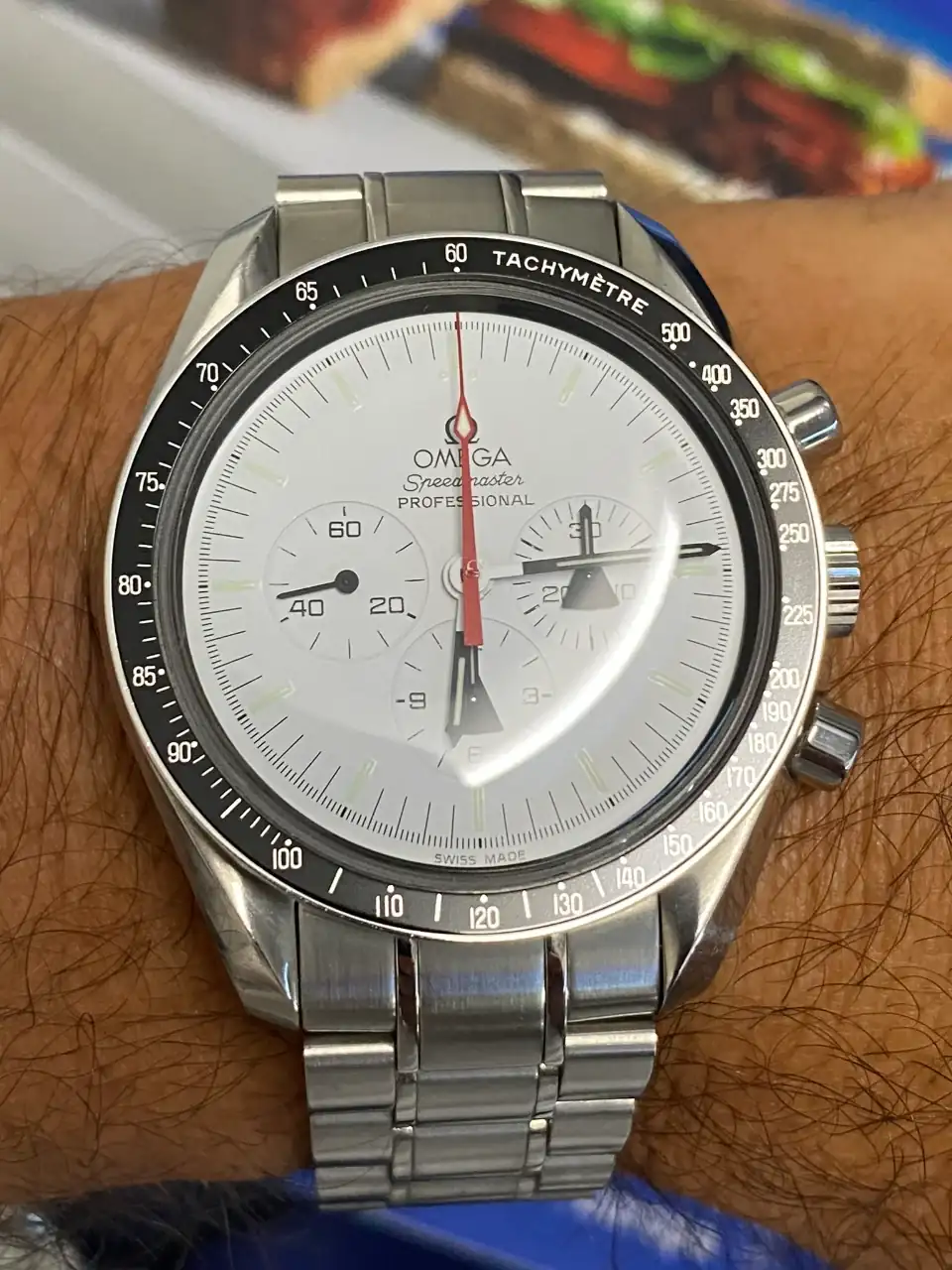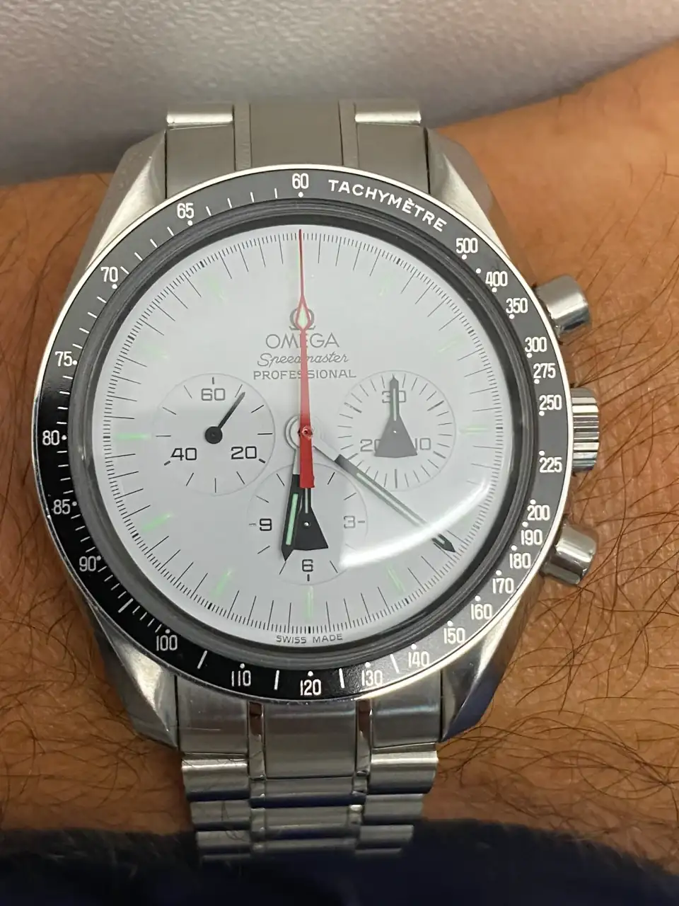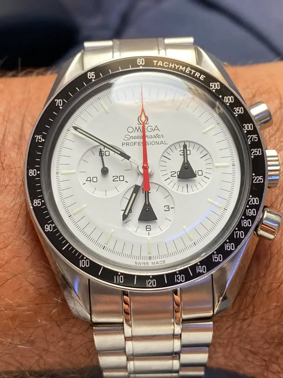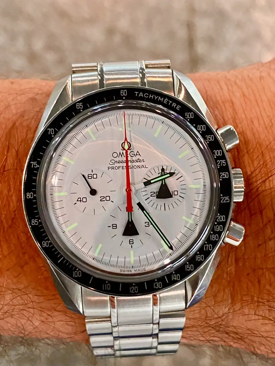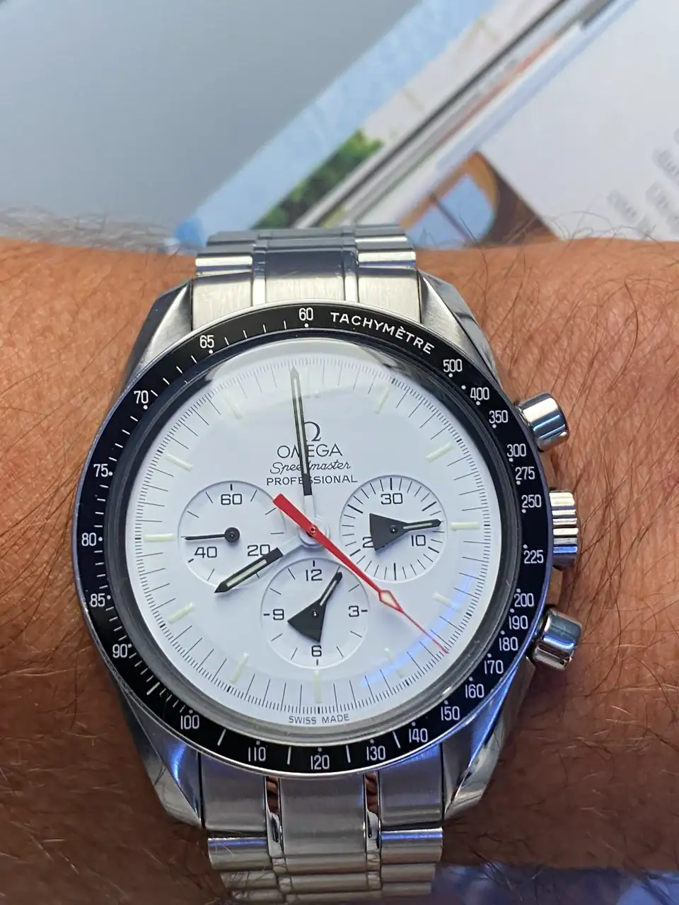 Tras llevar mucho tiempo pensando en poder añadir algún Speedmaster en blanco a la colección, realmente pocos eran blancos puros, realmente blancos. El Alaska Project era el más blanco de todos hasta la fecha, y el que más me ha gustado desde siempre, así que llevaba mucho tiempo pensando en tener uno pero, viendo la locura de los precios que han alcanzado últimamente en el mercado, aparqué la idea hasta ver si bajaban. Tras la reciente salida del nuevo Speedmaster Moonwatch Professional con dial blanco, consideré realmente comprar uno en lugar del Alaska Project, pues también es muy bonito y considerablemente más barato. Pero, tras mucho pensarlo, desestimé la idea: El Alaska Project me sigue pareciendo mucho más bonito, más blanco, y sobre todo más especial que el nuevo Speedy en blanco, que además no es una edición limitada. Así que seguí con mi búsqueda.